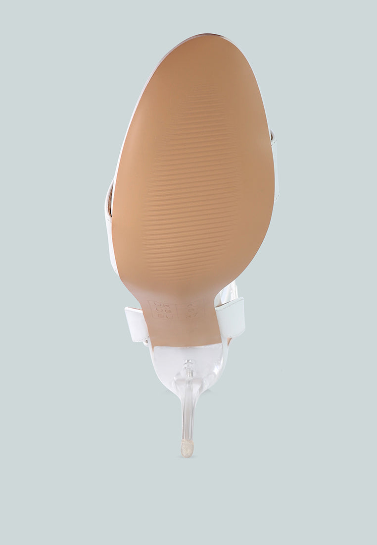 These lace-up sandals are a stunning example of beauty in minimalism, featuring a clear stiletto heel screaming trendy and beautiful. The versatile design ensures maximum wearability, making them perfect for various occasions. Whether you're a bride, a wedding guest, or a bridesmaid, these shoes will add a lovely finishing touch to your attire.