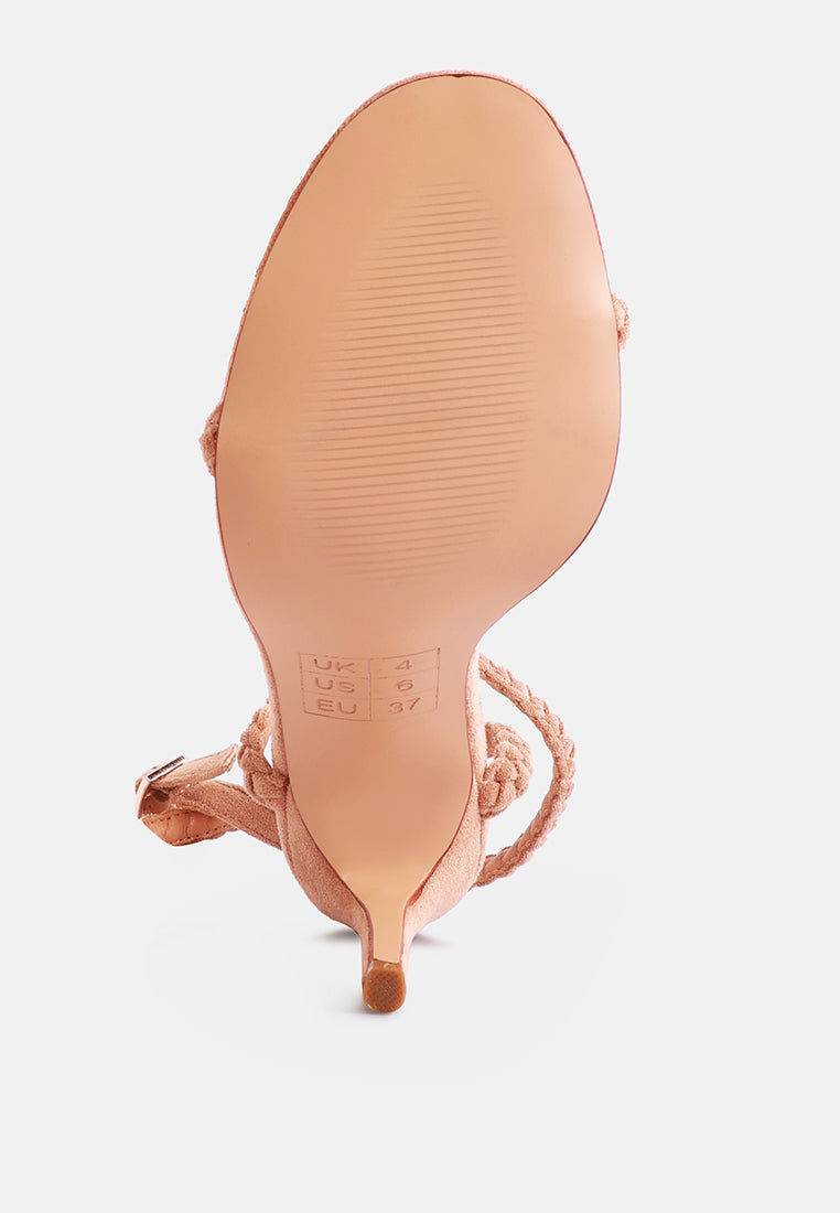 The ideal summer shoe that transcends well into a fall appropriate when matched with colourful tights. The heels feature braided strap detail with a metallic pin buckle fastening.