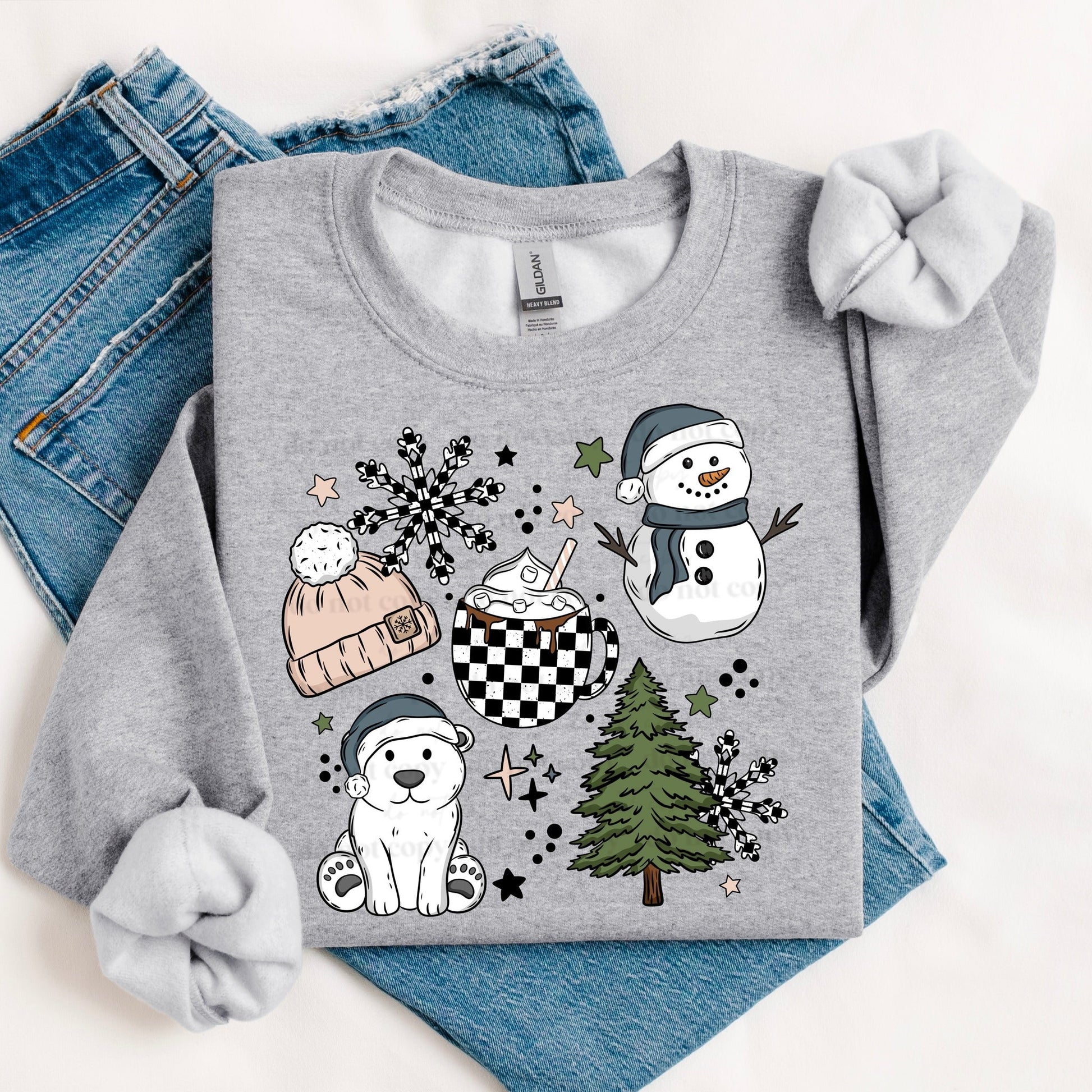 SNOWMAN CHECKER COCOA SWEATSHIRT