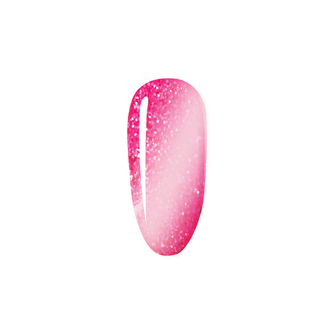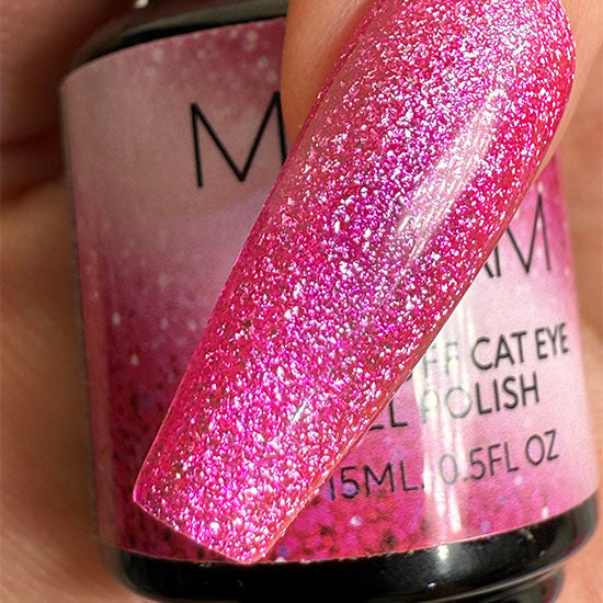 This crushed ice magenta pink cat eye gel is the ultimate romantic shimmer. The pink hue combined with subtle glitter creates a stunning, eye-catching effect that shifts beautifully with the light.