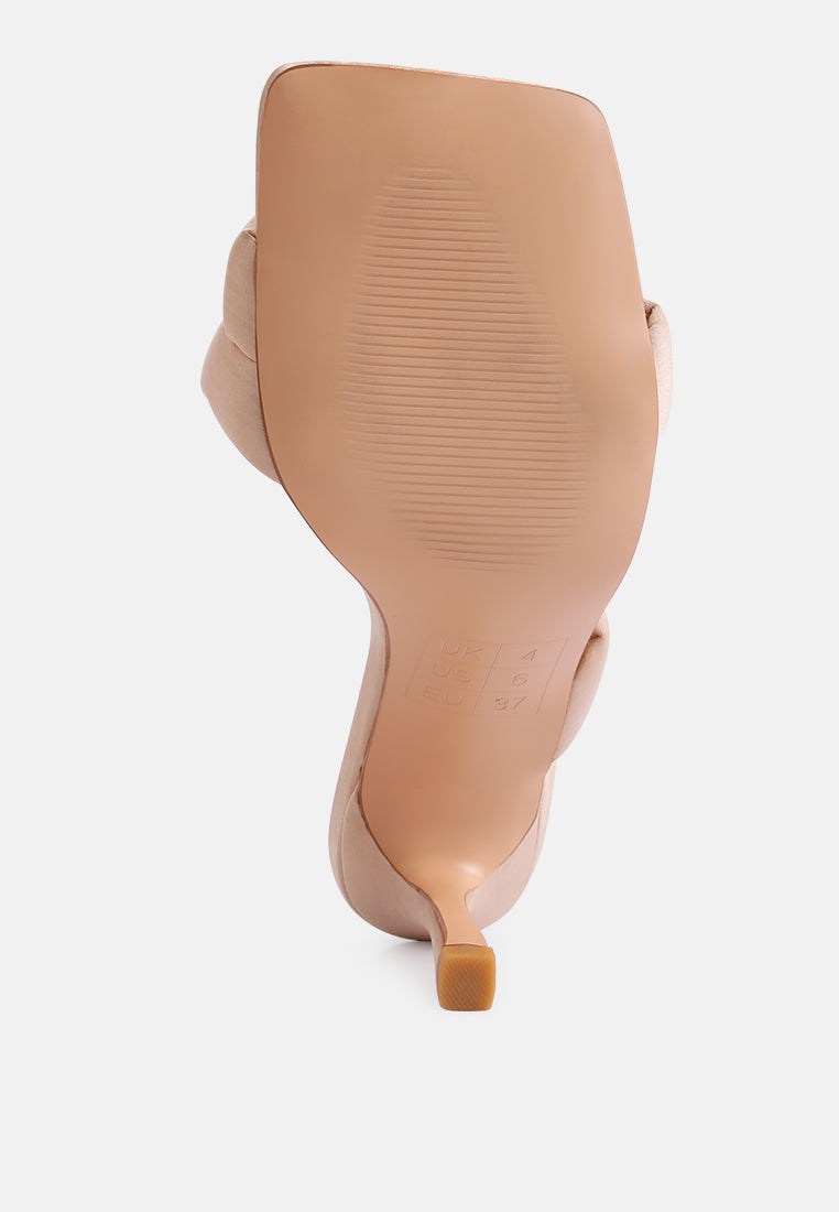 Elevate your style with these elegant heels featuring an open square toe and a single cross-strap design. Crafted from luxurious satin, these heels boast a pin heel for your utmost comfort and glam! Perfect when running errands or when the day calls for a cold coffee!