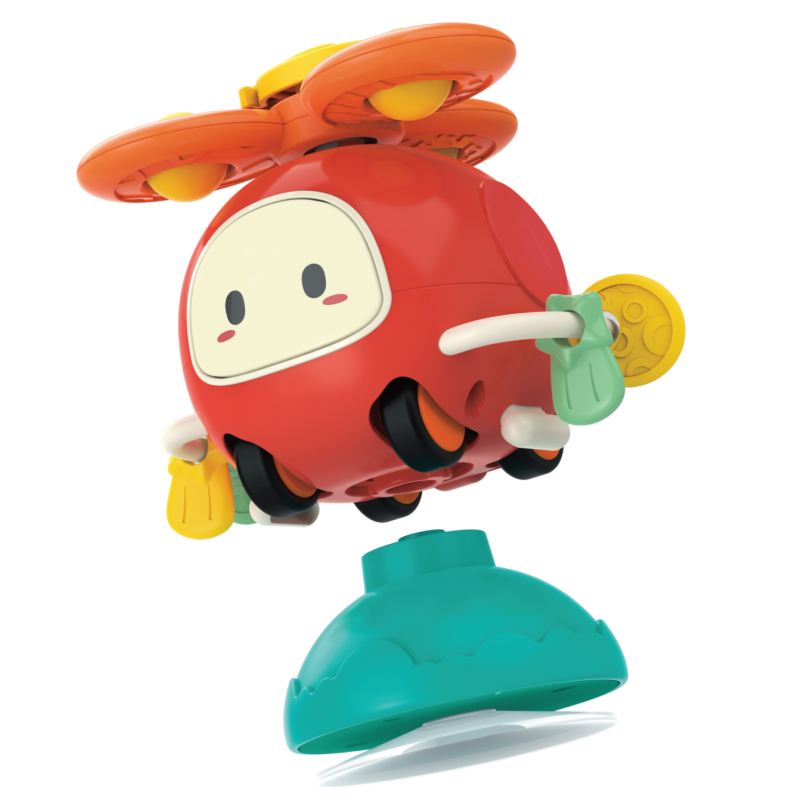 Once your little one is more coordinated, remove copter from the base for friction-powered vehicle play. Rev the copter and release to watch it go. For additional motor development, remove propeller from the copter, attach to small suction cup, and stick on tub or fridge for spinner play; or spin the propeller in your hand for fidget fun. Sticks to many smooth surfaces.