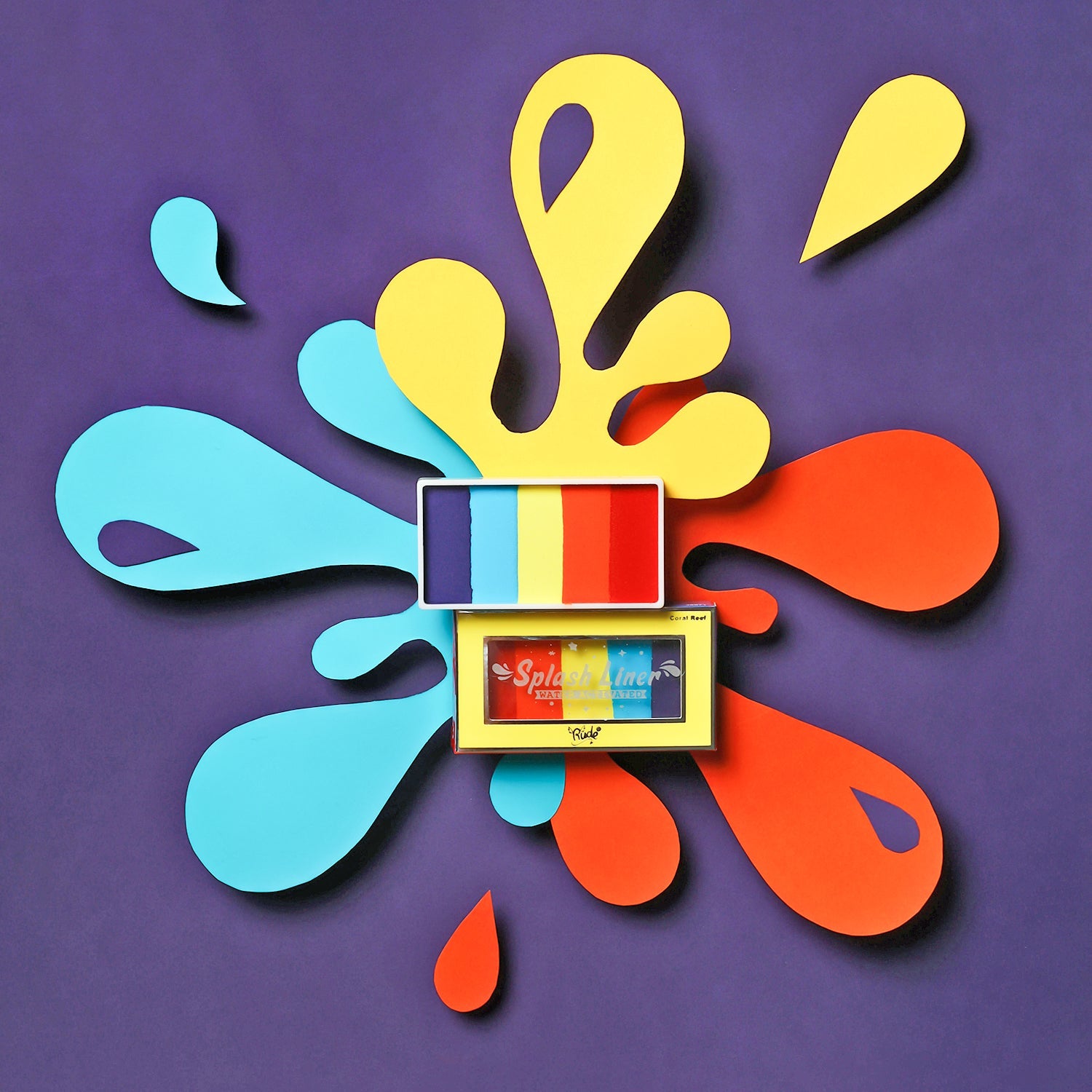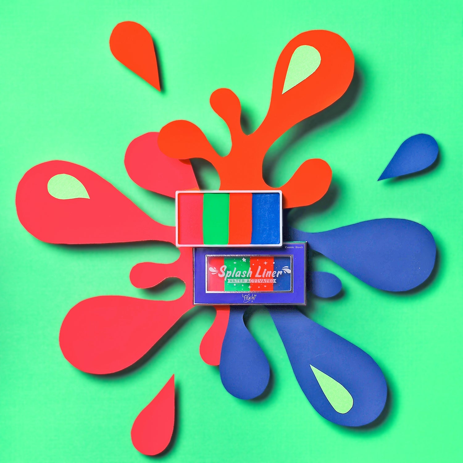 Introducing our latest water activated split cake liners! A little splash of water will turn these colors into liquid liners! The splash liner is available in twelve different variations, each containing multiple colors. These liners are perfect for face and body painting. Apply using one of our specially designed Splash Liner Brushes.
