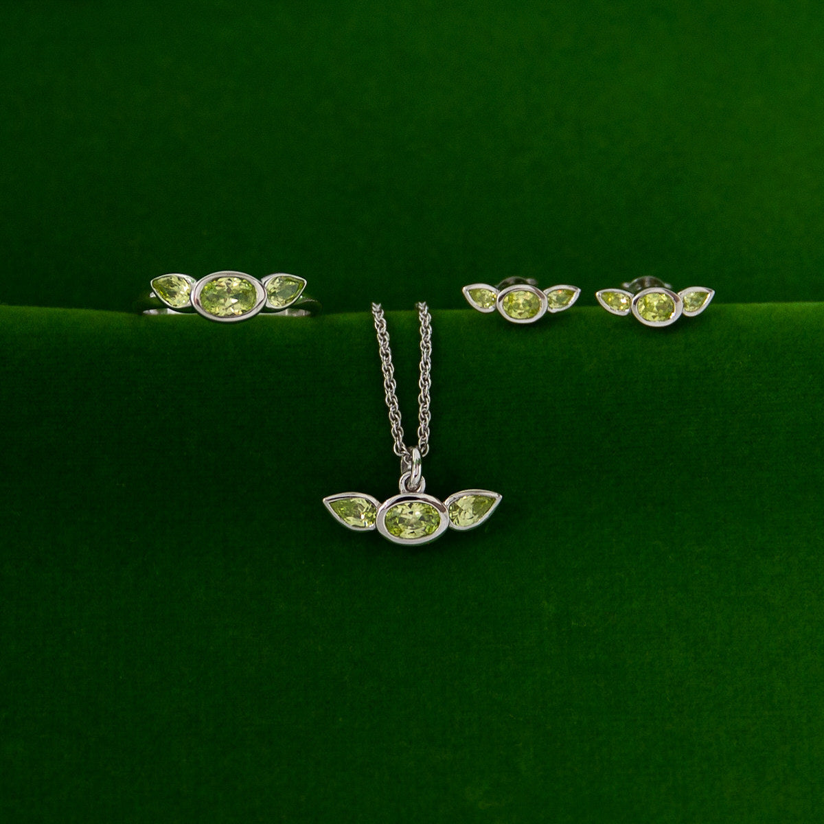 Handcrafted in solid sterling silver, the GROGU Crystal Necklace may be the most adorable accent necklace in the galaxy! Bezel set in polished silver, a brightly faceted oval cubic zirconia crystal sits between two outward facing teardrop crystals, representing THE CHILD’s iconic visage. Brilliant in its simplicity, the cheerful green crystals feature a cutout back so that light can shine through for maximum sparkle. The charming pendant hangs from an adjustable sterling silver rope chain with graceful extender weight.