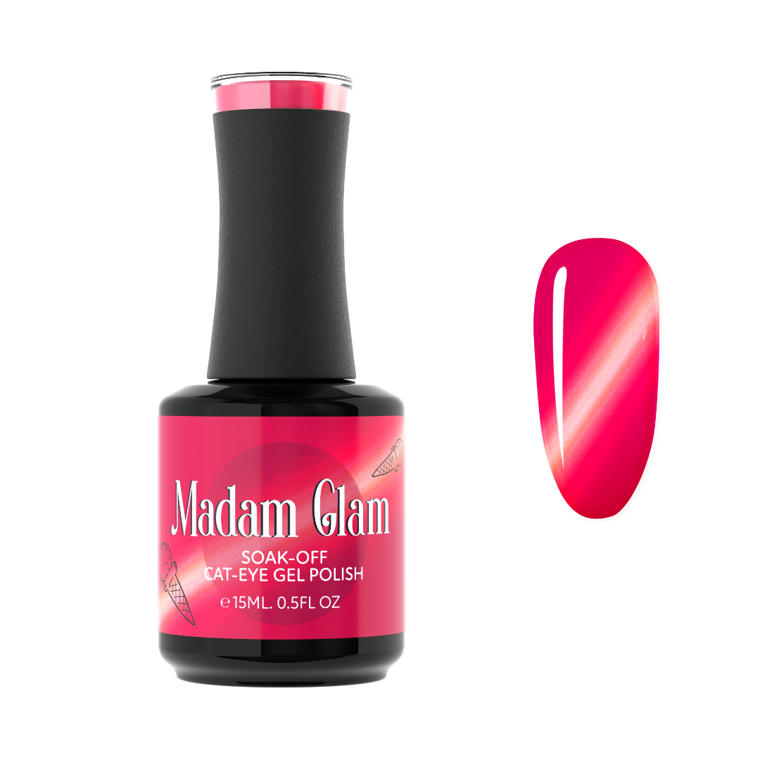 Sweeten the night with a luscious raspberry pink cat eye polish that glows with vibrant intensity after dark. This rich, creamy shade adds a playful twist to your look: bold, flirty, and impossible to ignore.