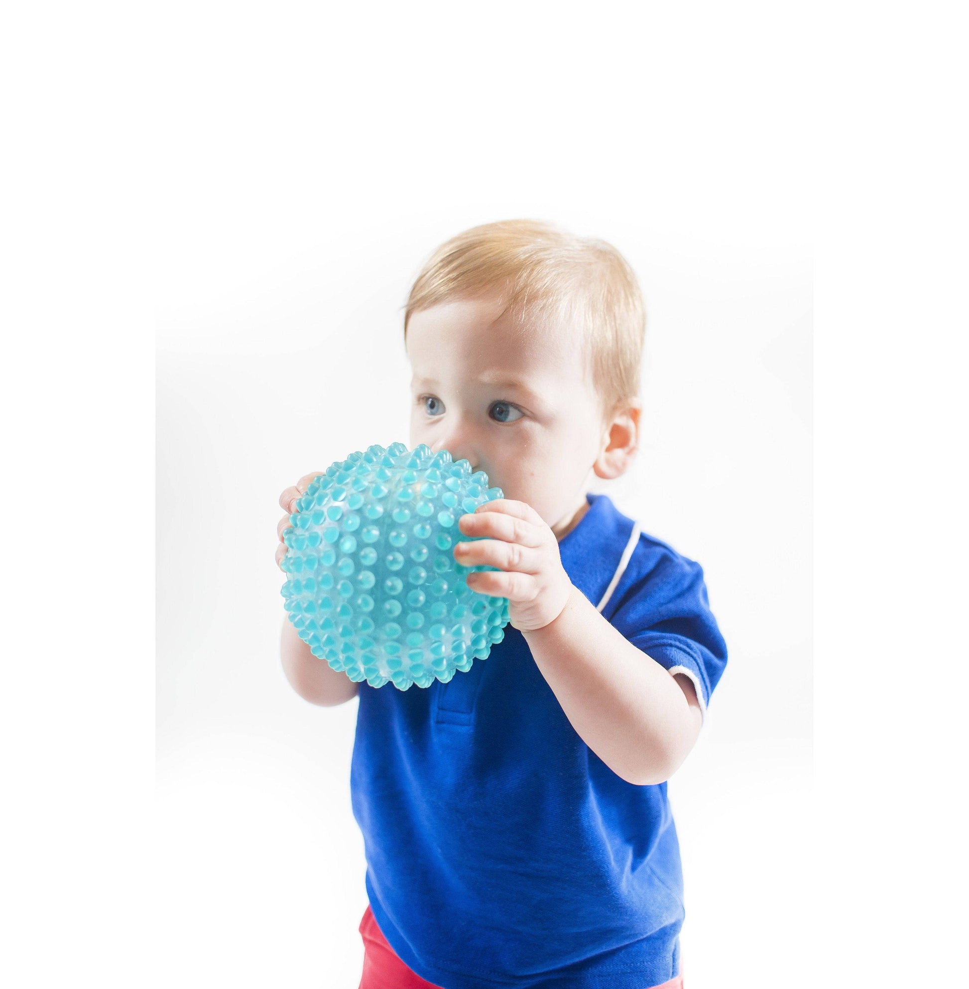 - The nubby texture and squeezable design make it easy for little hands to grab and hold.