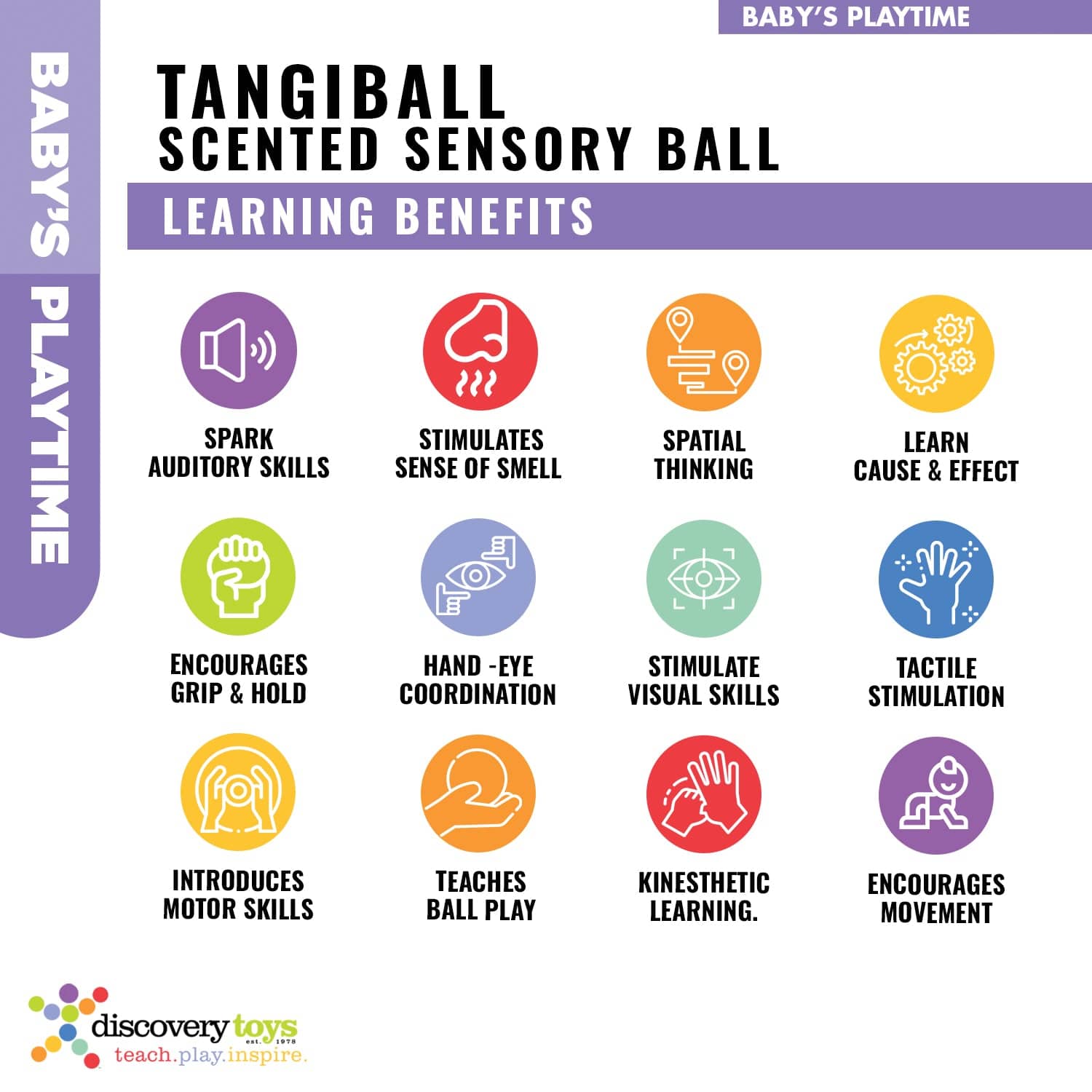 - The ideal toy for introductory ball play. Grab, toss, catch, roll, bat or kick.