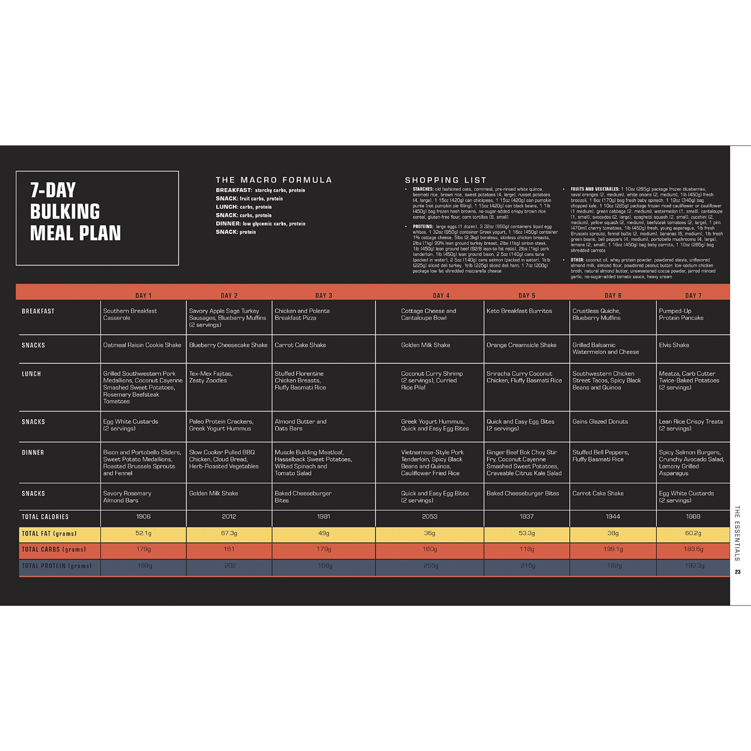 - 5 custom-designed meal plans for bulking and cutting phases, as well as plans for ketogenic dieting, calorie cycling, and carb cycling