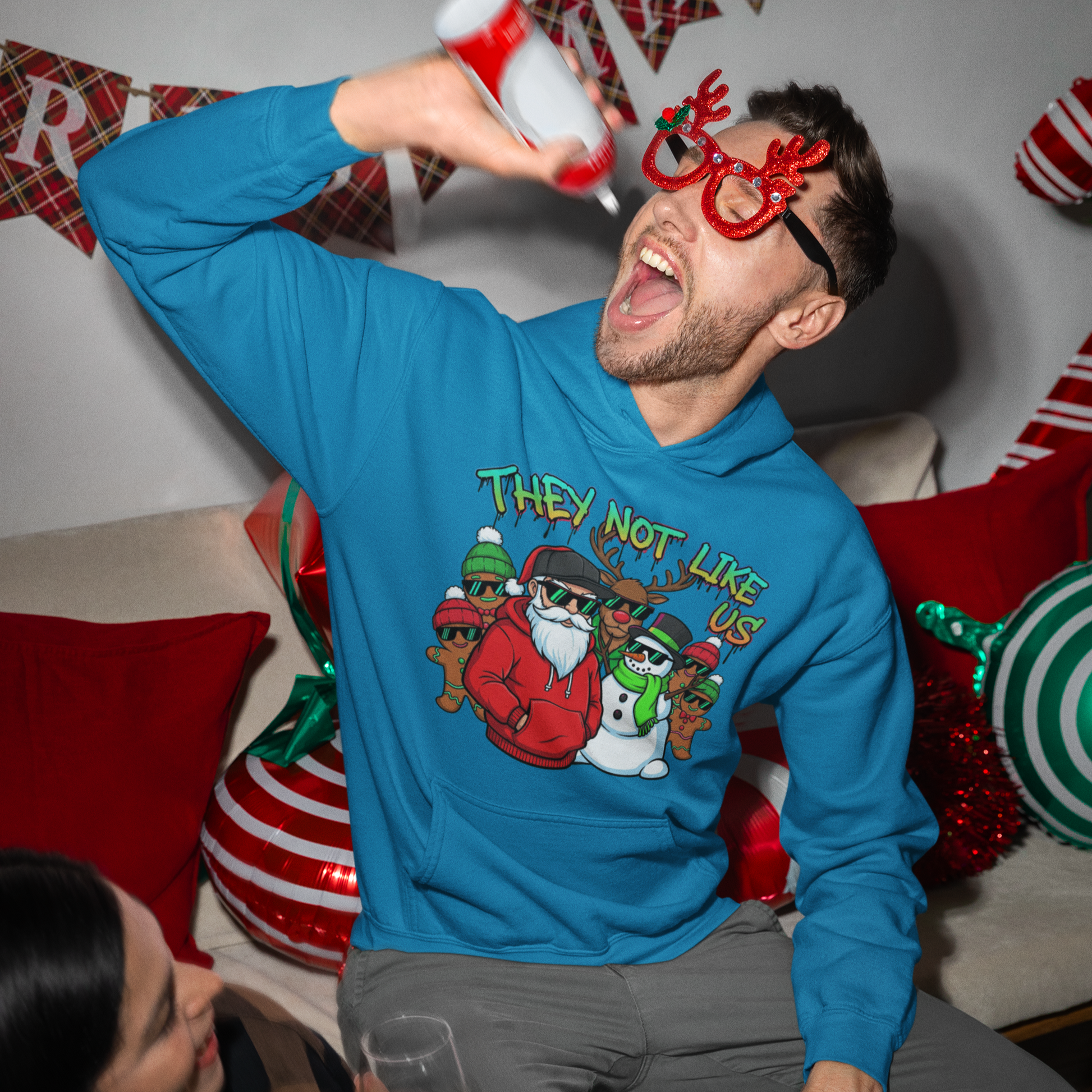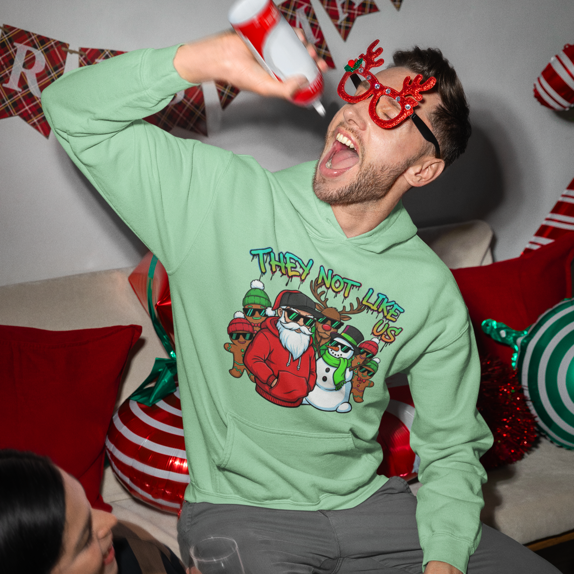 Stand out this holiday season with the They Not Like Us Adult Graphic Hoodie—where festive meets fierce. This bold design reimagines classic Christmas characters with contemporary street-style energy, perfect for anyone who celebrates the holidays on their own terms. Featuring Santa, Frosty, and the iconic crew rendered in a modern, eye-catching aesthetic, this hoodie proves your holiday spirit doesn't have to be traditional to be genuine. Crafted from soft, durable fabric, it delivers comfort without compromising on attitude. Whether you're gathering with your crew, hitting holiday parties, or just making a statement, this hoodie announces that your crew plays by different rules. It's the ultimate gift for trendsetters and holiday rebels who want their festive wear to match their unique vibe.