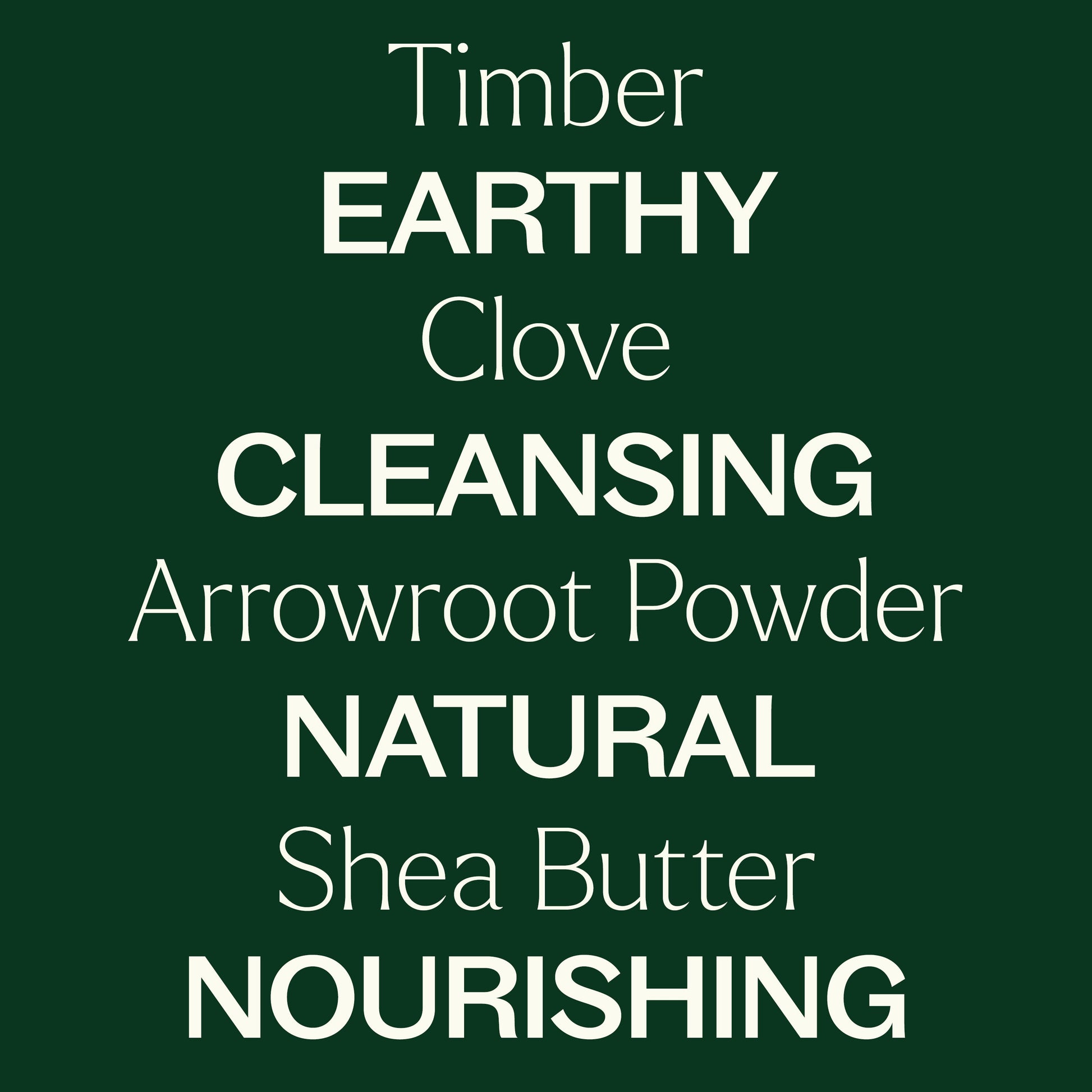 Timber & Clove Natural Deodorant will tackle body odor with its completely natural fresh forest and spice scent. Crafted without the use of harsh chemicals such as aluminum and parabens, it offers a safe and efficacious alternative to traditional deodorants. Its silky, non-greasy consistency makes for an easy application, while enriching the skin with nutrients from Shea Butter, along with Camellia, Coconut, and Rice Bran oils. A blend of arrowroot powder, tapioca starch, baking soda, and magnesium hydroxide helps neutralize odor, absorb moisture, and ensure a dry feeling. This gentle and lightweight deodorant promotes natural skin breathing, keeping you refreshed and assured.