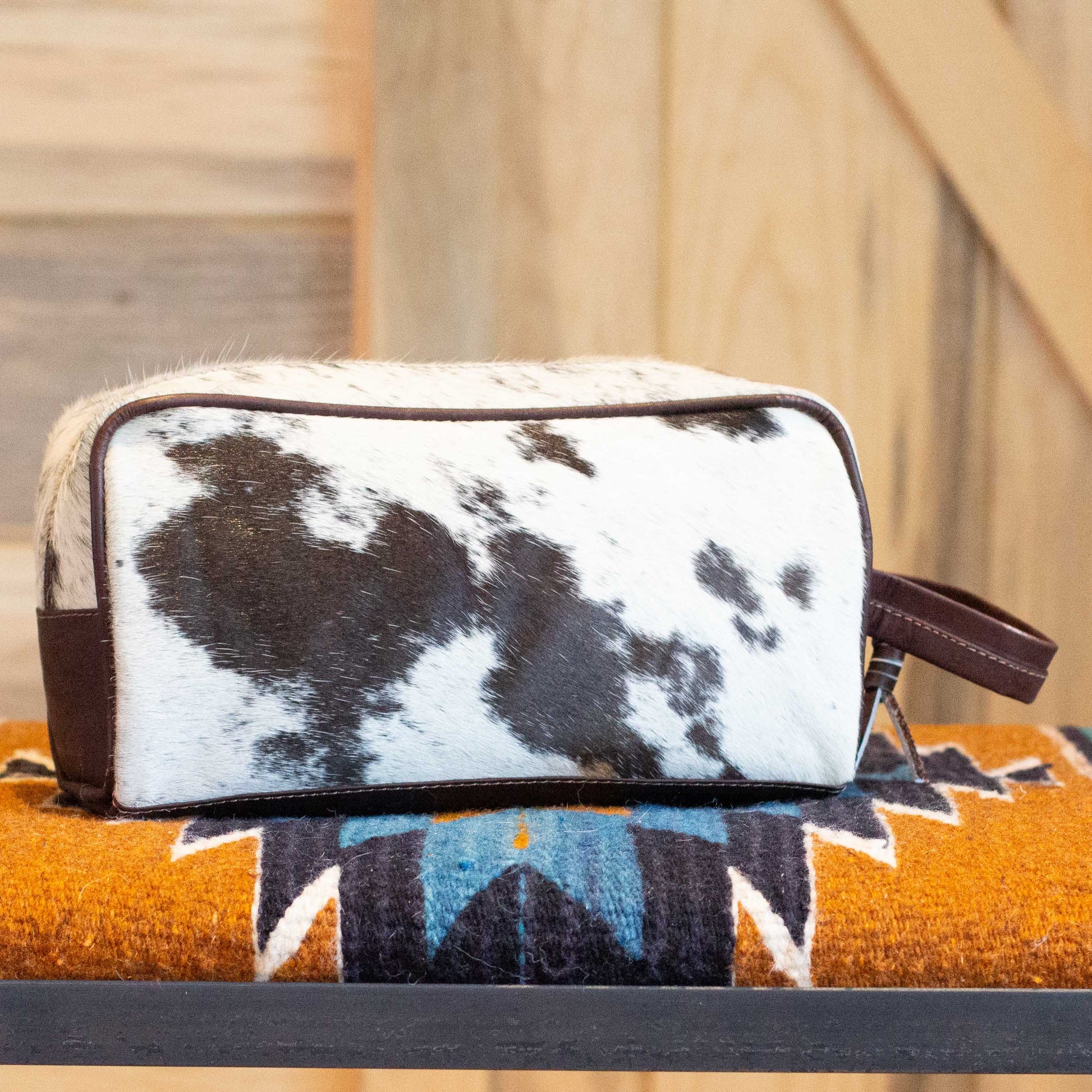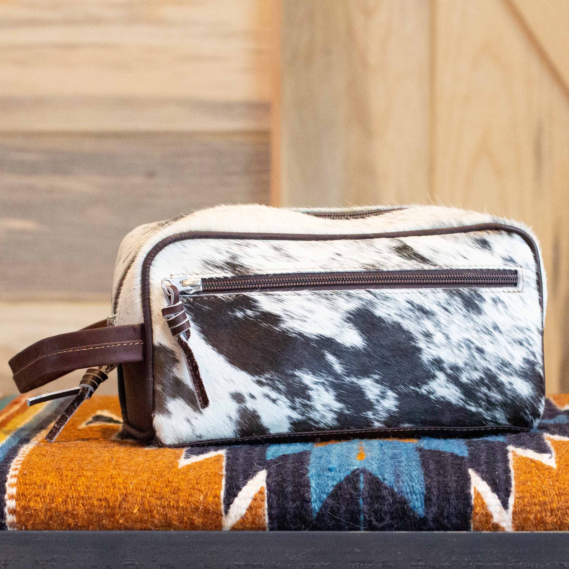 Go ahead and bring that full tube of toothpaste...you'll have plenty of room with our cowhide Toiletry Bag!
