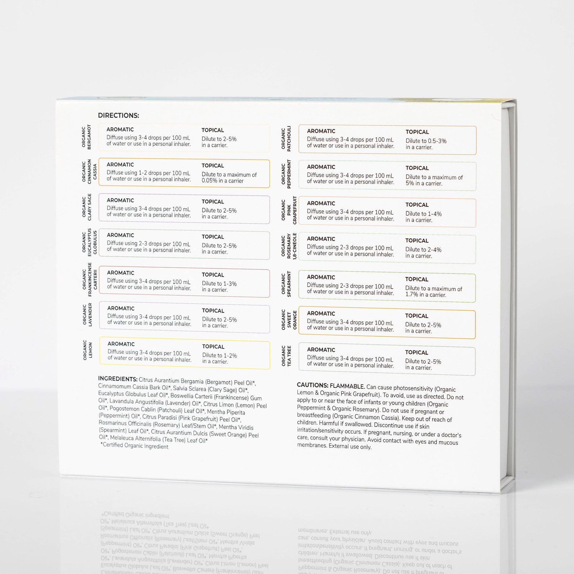 This set includes USDA Certified Organic essential oils. These oils are free from GMOs and the plants grow freely without the aid of synthetic fertilizers and in soil that is clean of prohibited substances, such as harmful pesticides. When you purchase a certified organic product, you are also helping to conserve biodiversity! This helps to ensure our natural landscapes and their ecosystems are maintained and intact for generations to come.