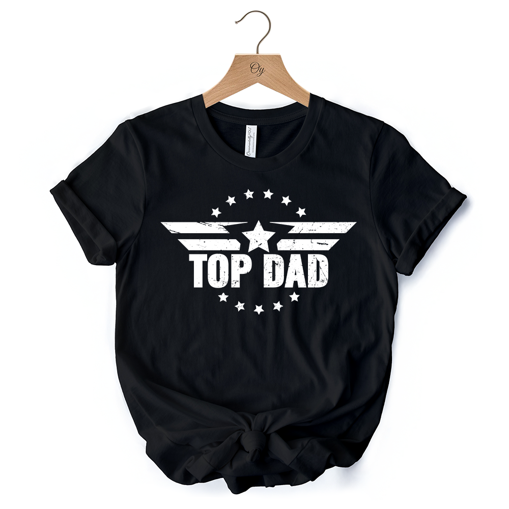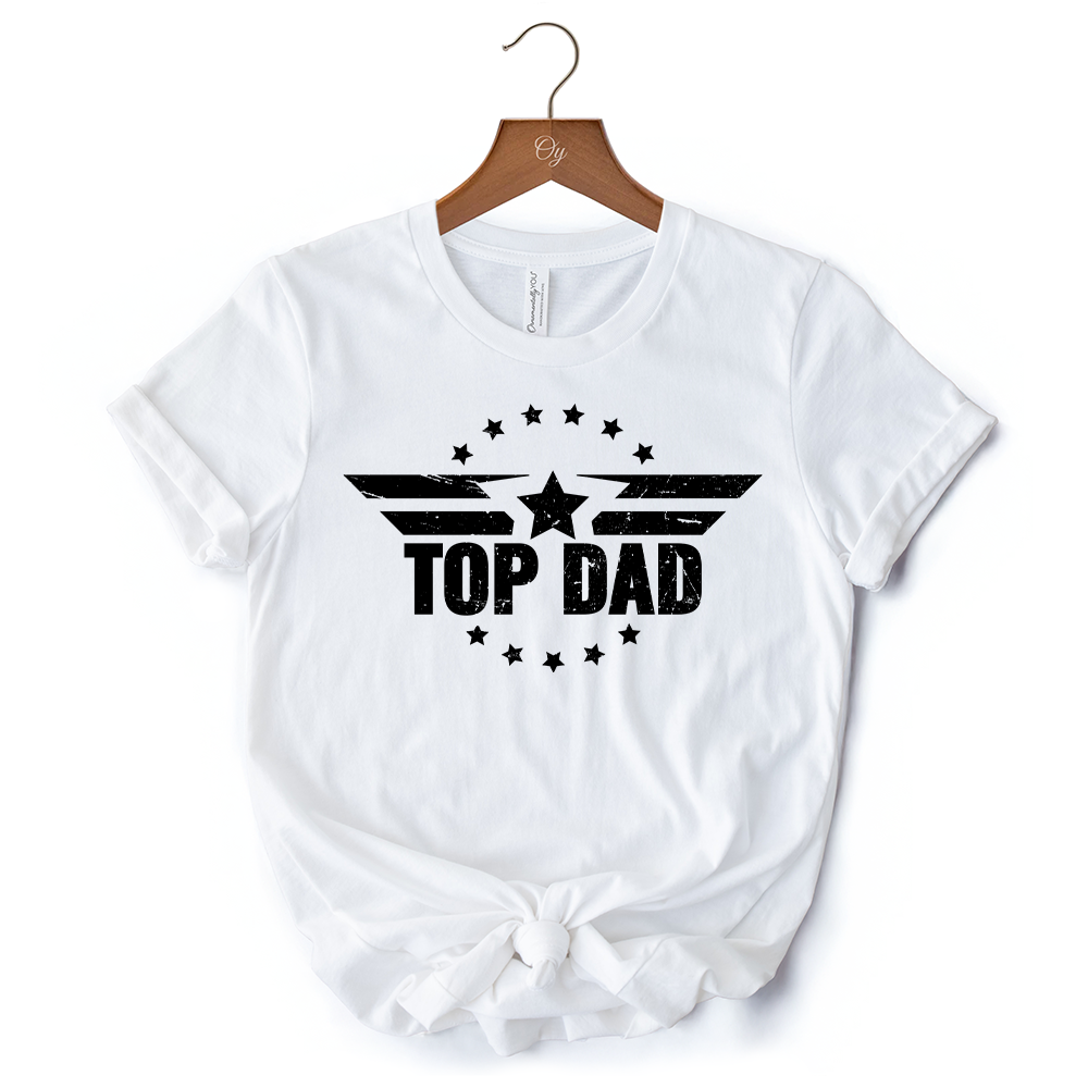 Top Dad Military Star T-Shirt, White and Black Patriotic Tee for Heroic and Proud Fathers