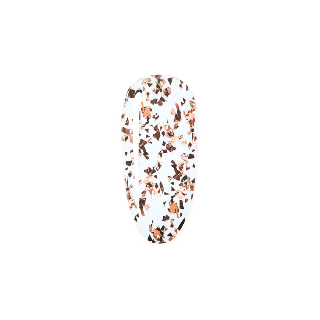 Shiny Top Coat with Bronze Flakes with varying sizes of bronze flakes