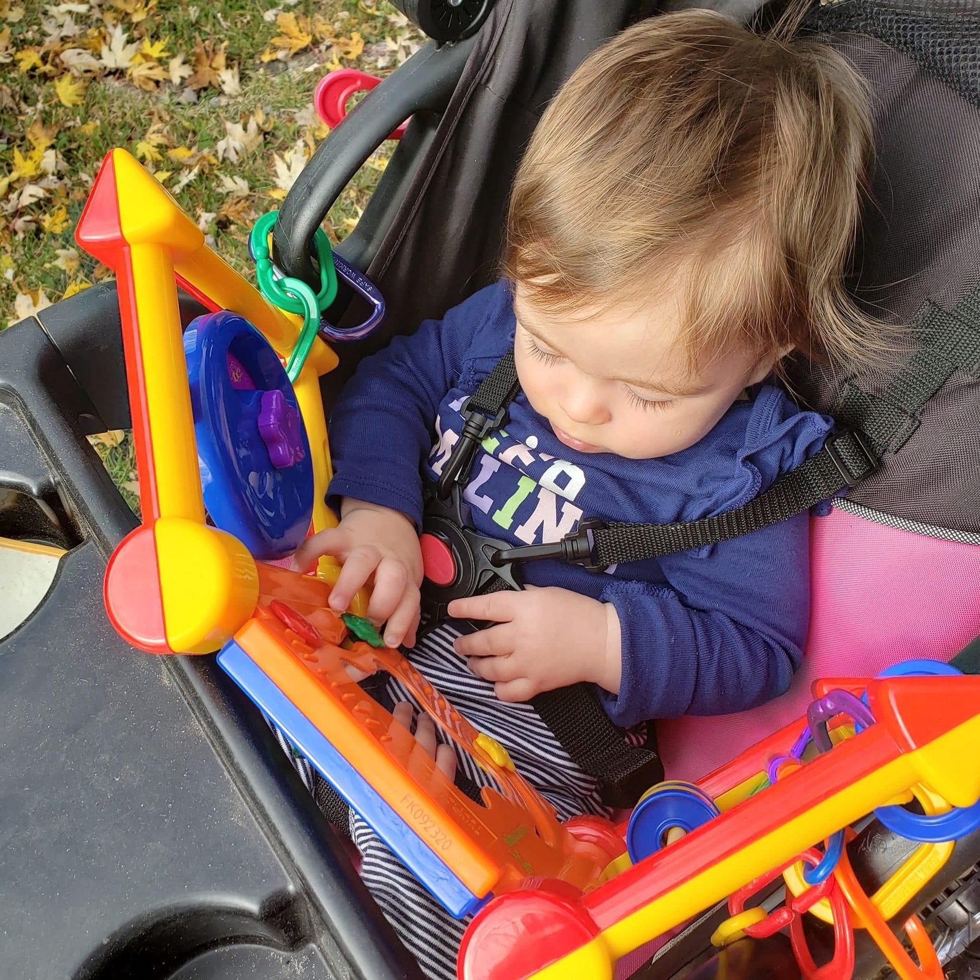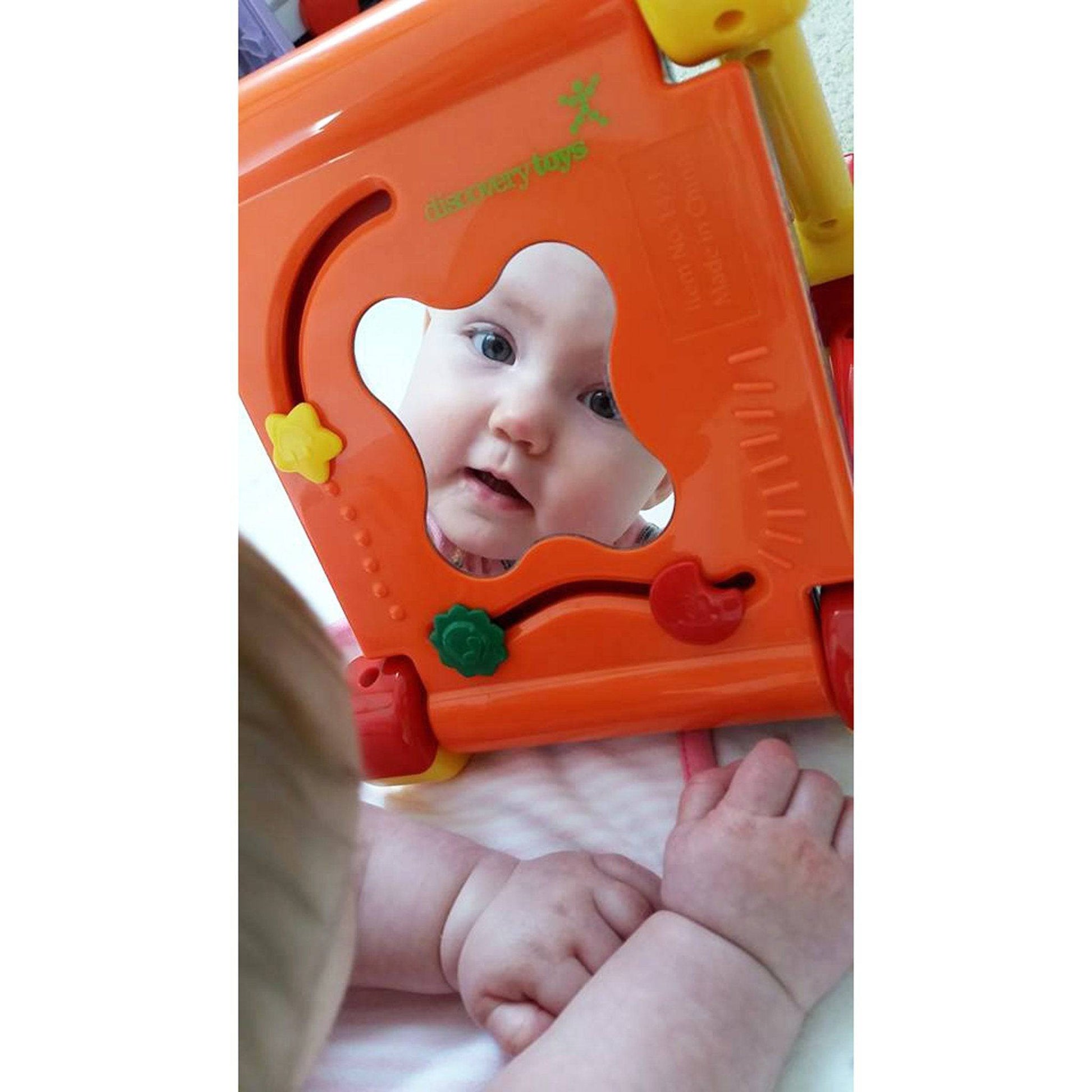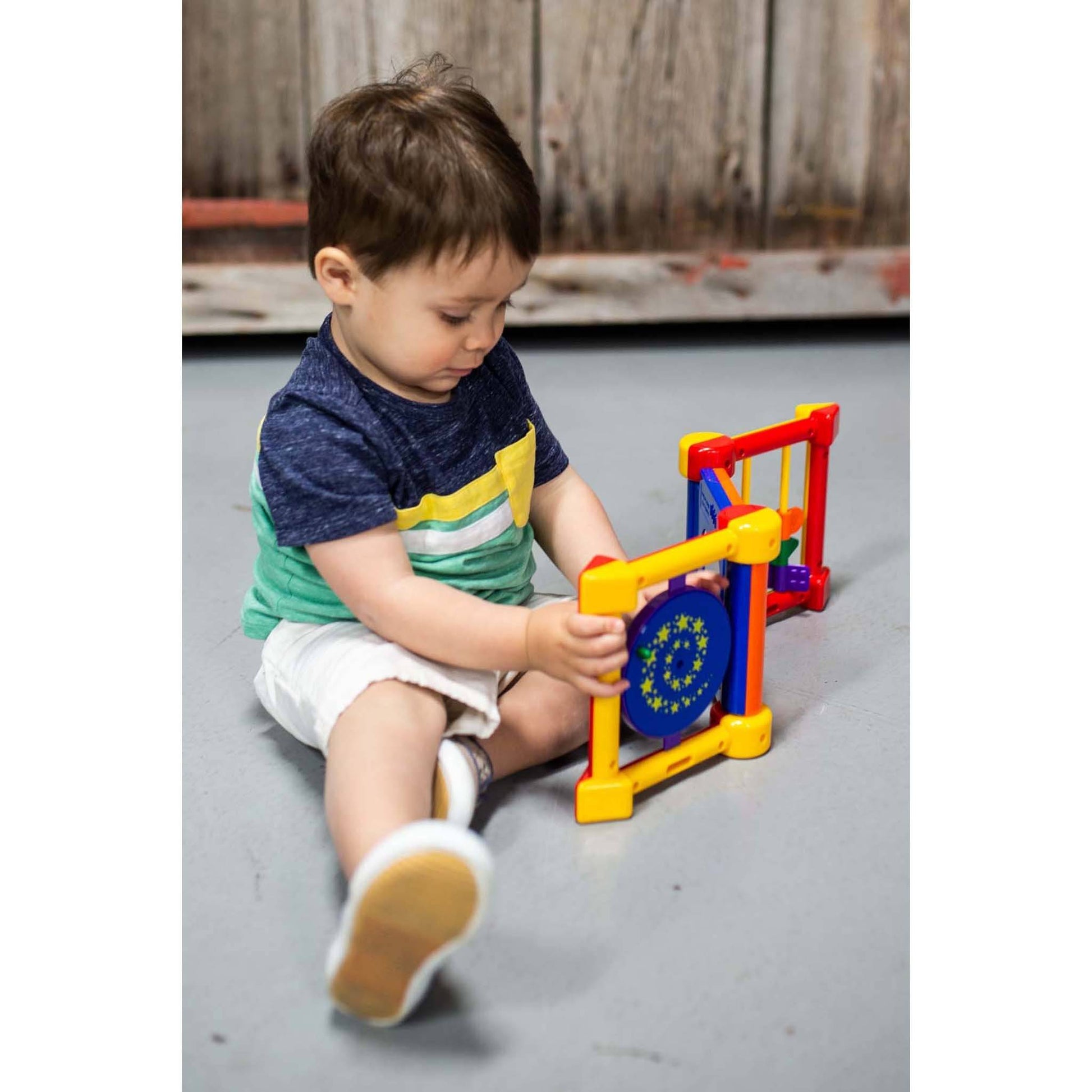 - Develop small motor dexterity and manipulation by encouraging baby to move, turn, spin, push, slide and twist individual moveable parts.