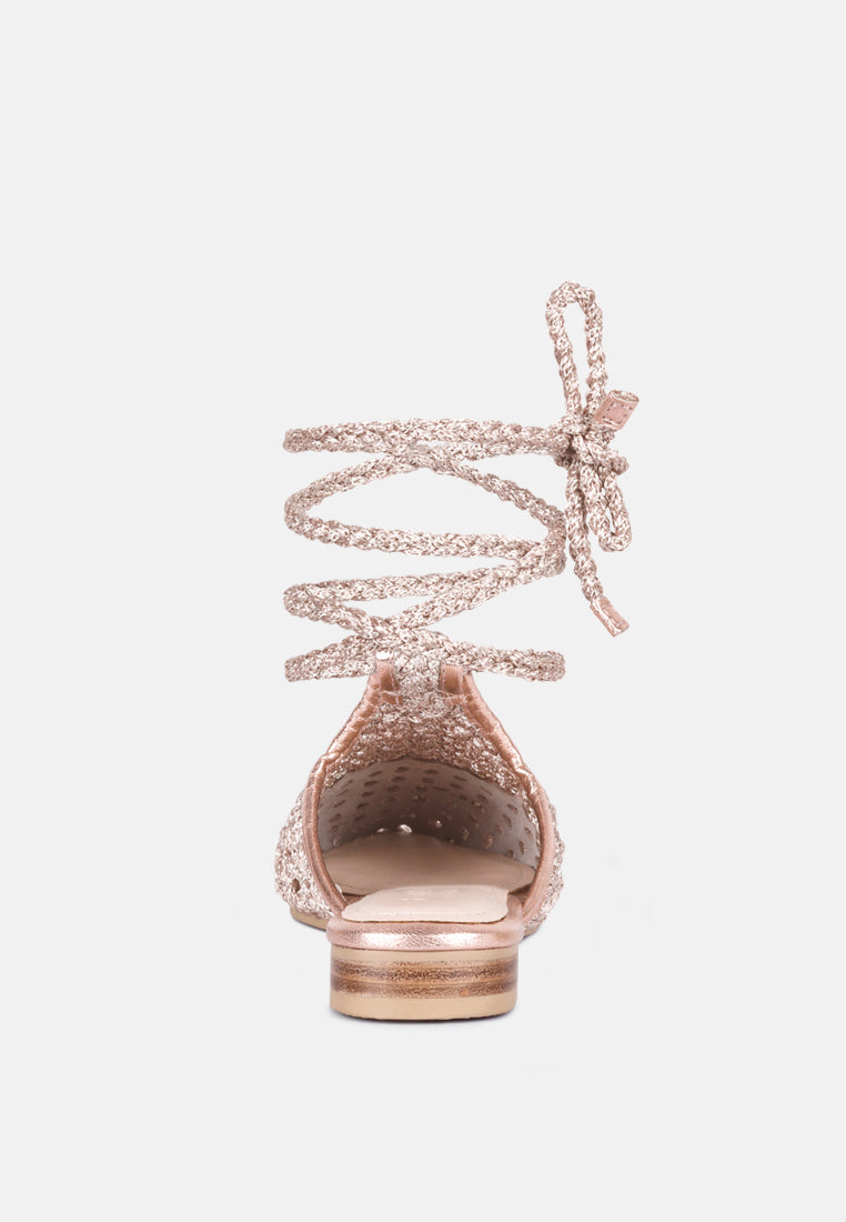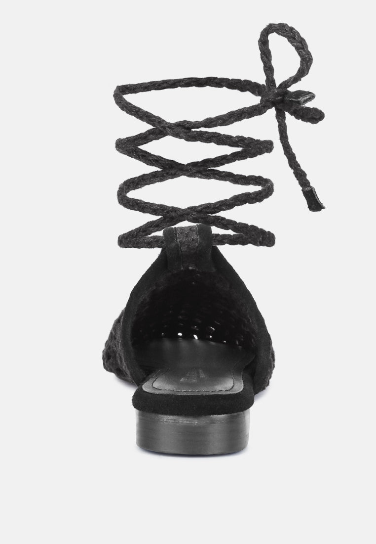 Tutsi Handwoven Honeycomb Cotton Tie Up Mules Flats