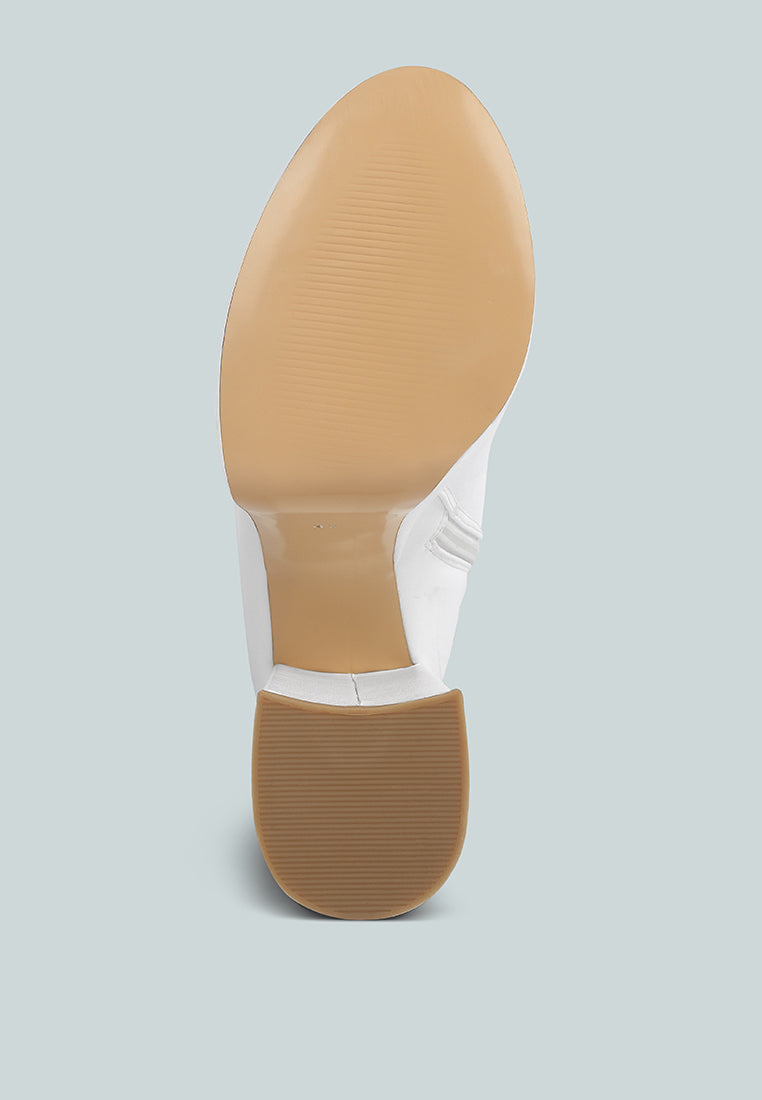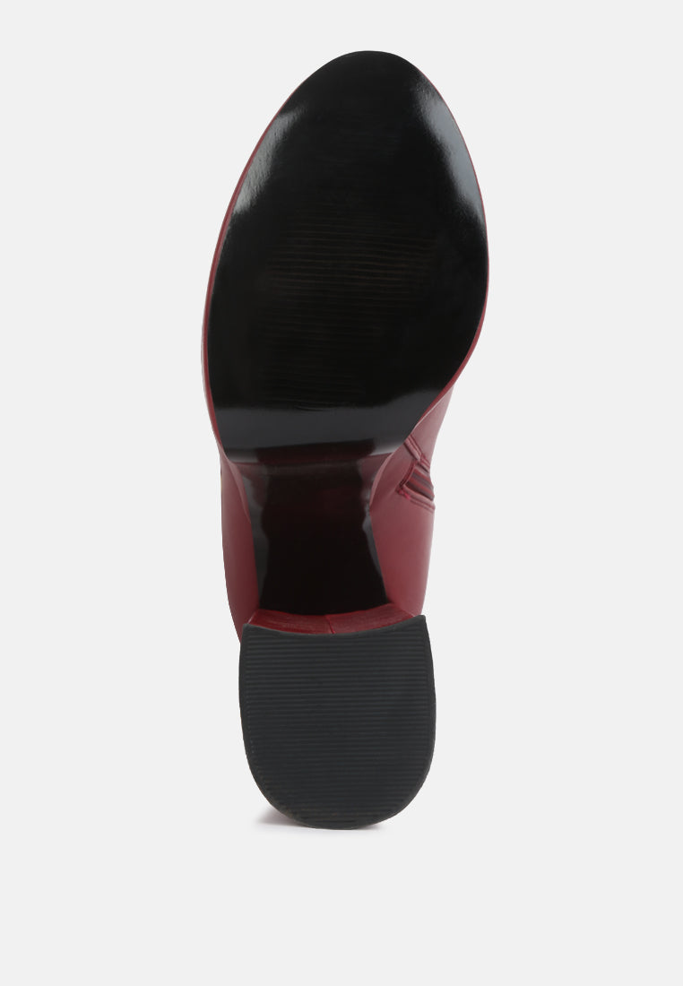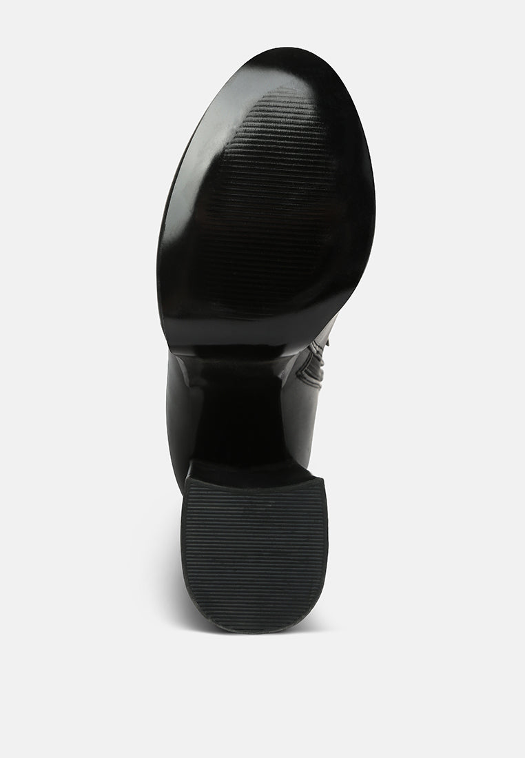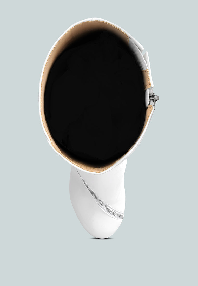 Beautiful calf boot in lush faux leather is winter high street favorite. Comes with two zipper detail; one of̴Ì? which add to the look and other serves utility. The elasticated gussets add to flexibility and enhance fit. The high block heels are further accentuated with the chunky platform.