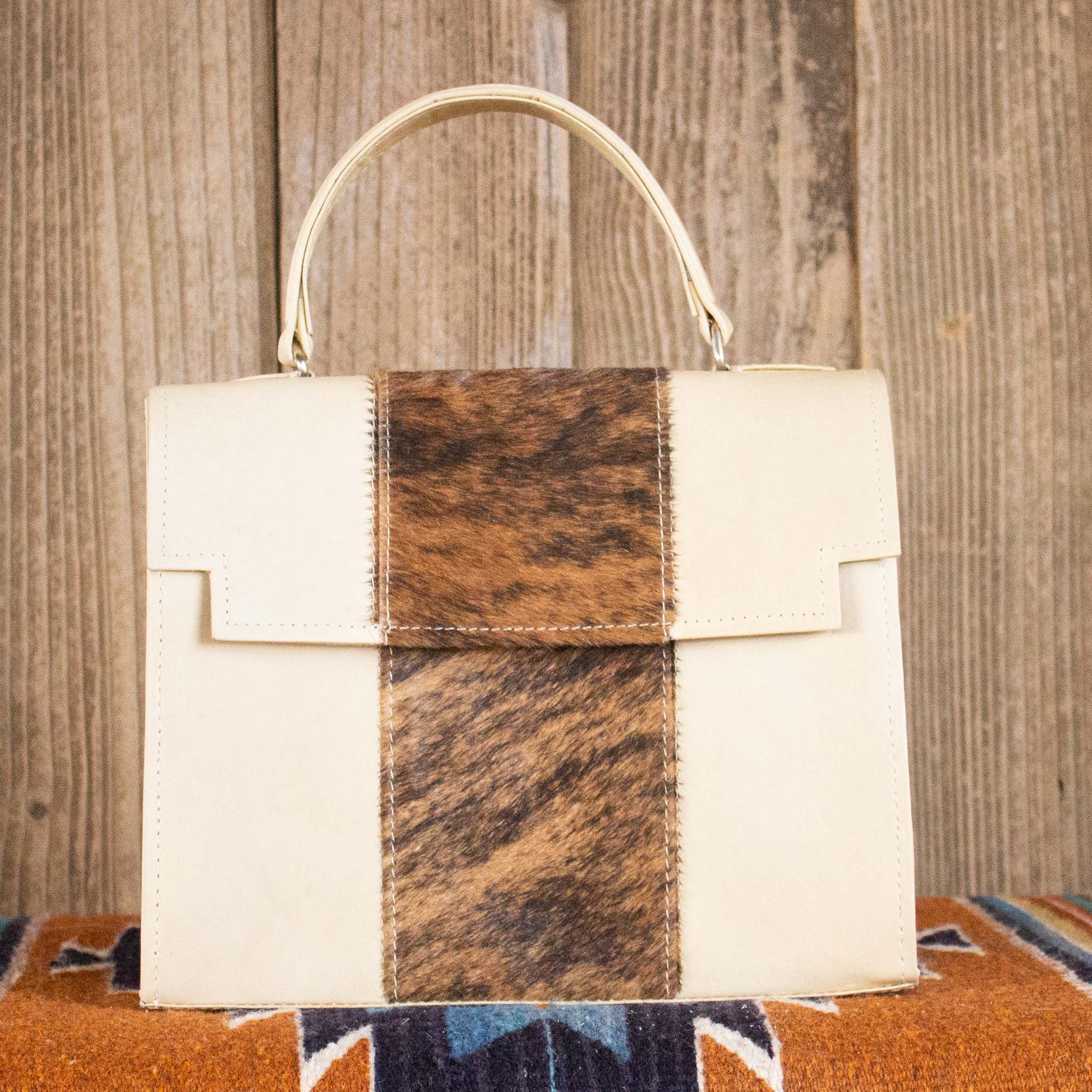 Crafted from premium leather with a distinctive vertical cowhide stripe on the front, the Vintage Purse has a refined yet bold look. Its structured shape, complete with a leather top handle, offers a classic silhouette, while the detachable crossbody strap provides hands-free versatility. For easy access to essentials, the back features a large sleeve pocket—perfect for keeping your phone or keys within reach.