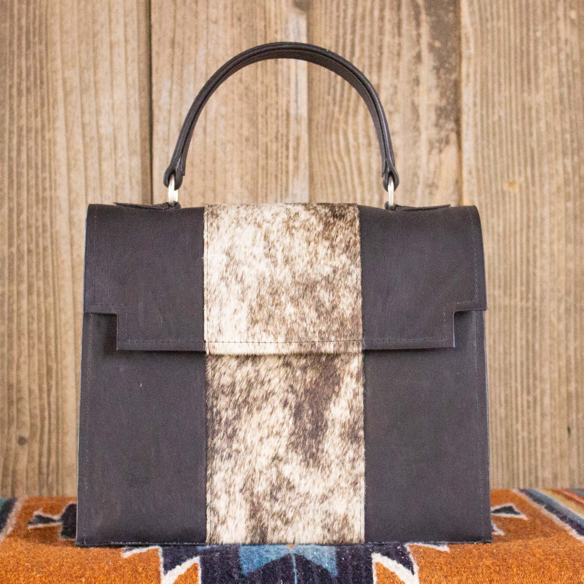 Crafted from premium leather with a distinctive vertical cowhide stripe on the front, the Vintage Purse has a refined yet bold look. Its structured shape, complete with a leather top handle, offers a classic silhouette, while the detachable crossbody strap provides hands-free versatility. For easy access to essentials, the back features a large sleeve pocket—perfect for keeping your phone or keys within reach.