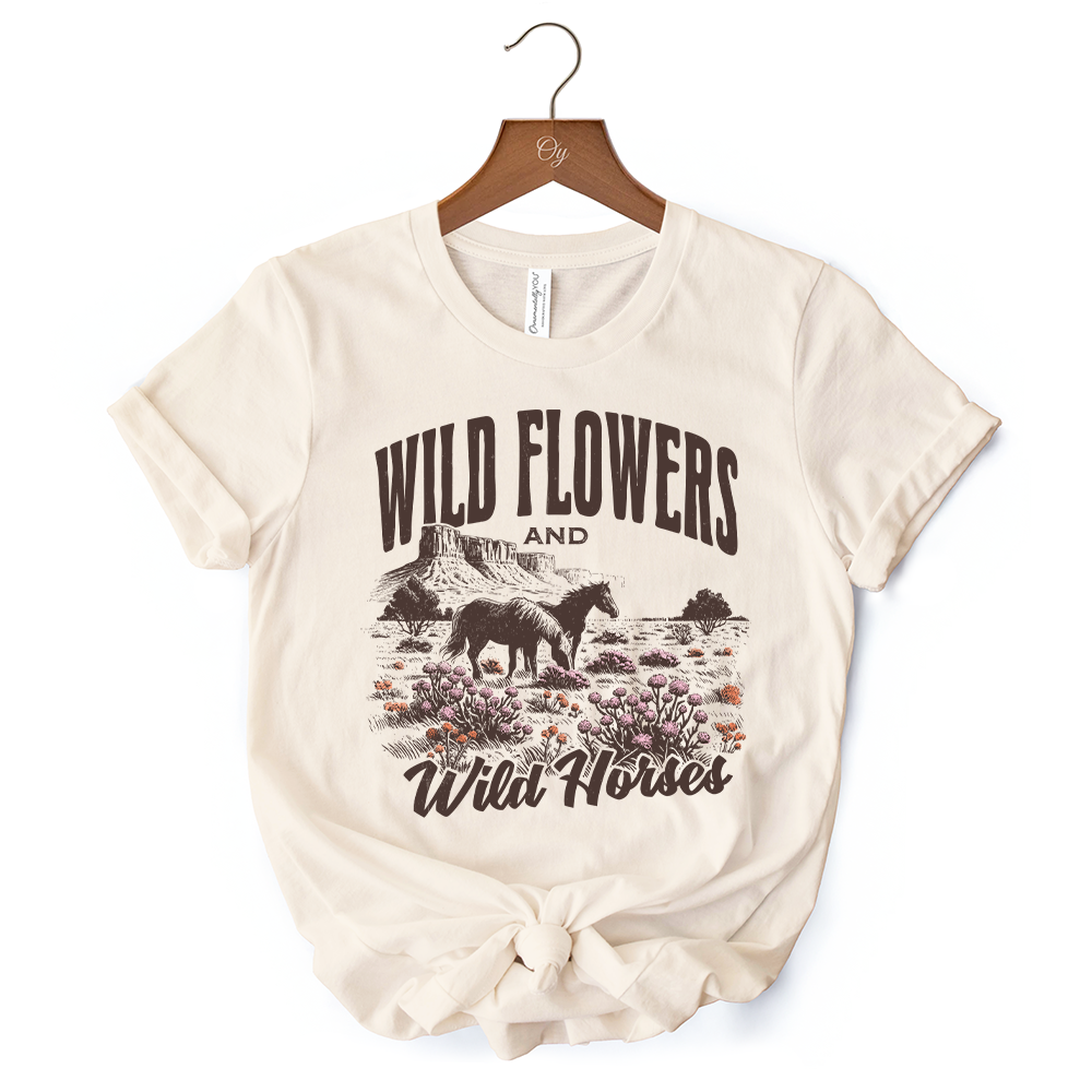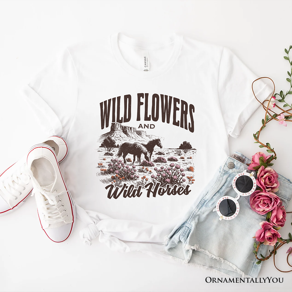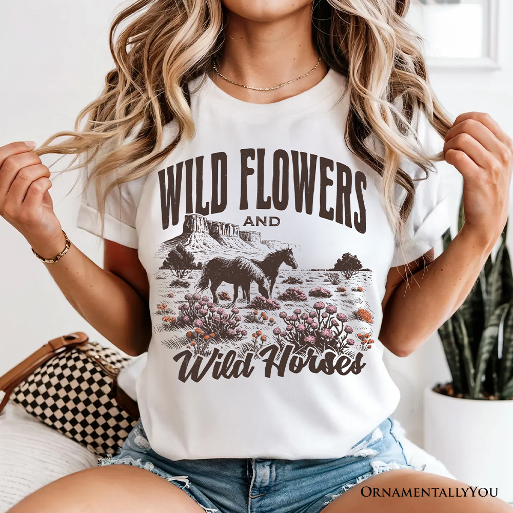 Wild Flowers and Wild Horses T-Shirt, Retro Western White and Natural Tee for Free-Spirited Women