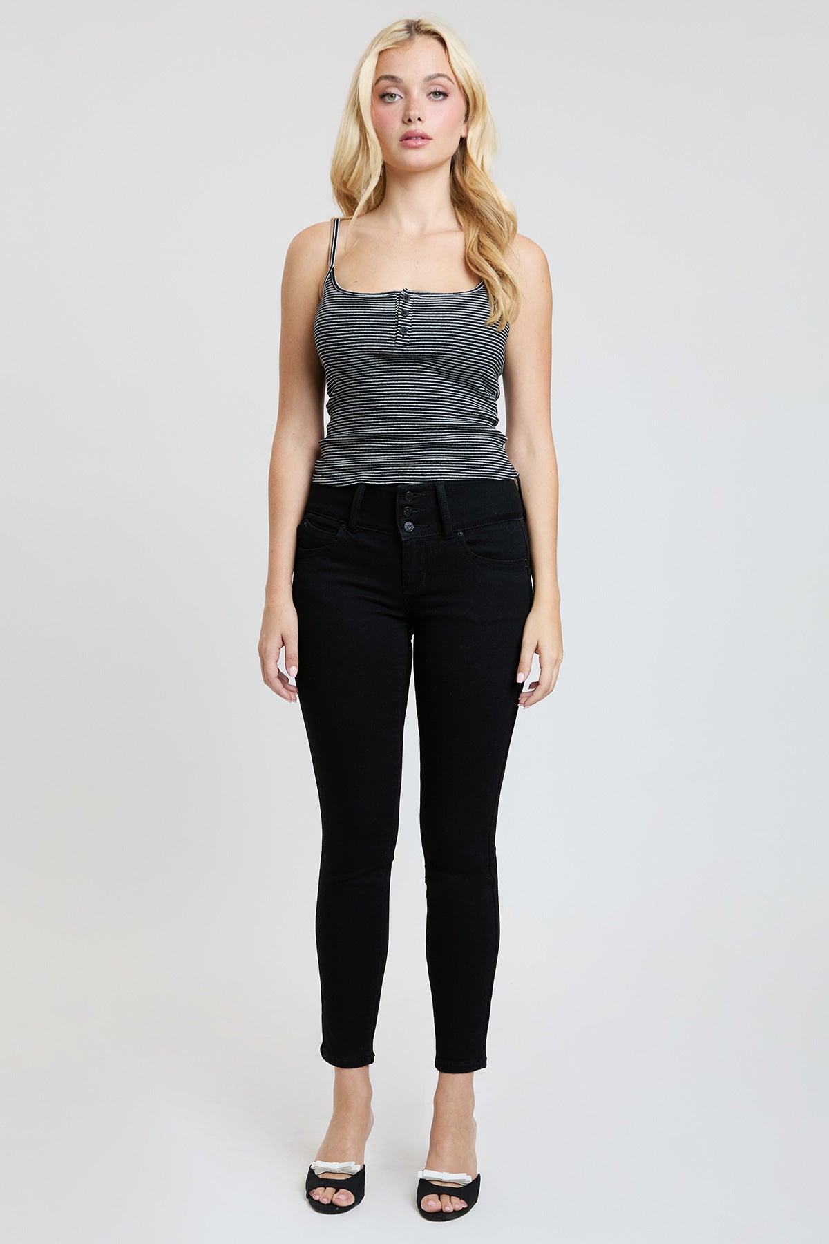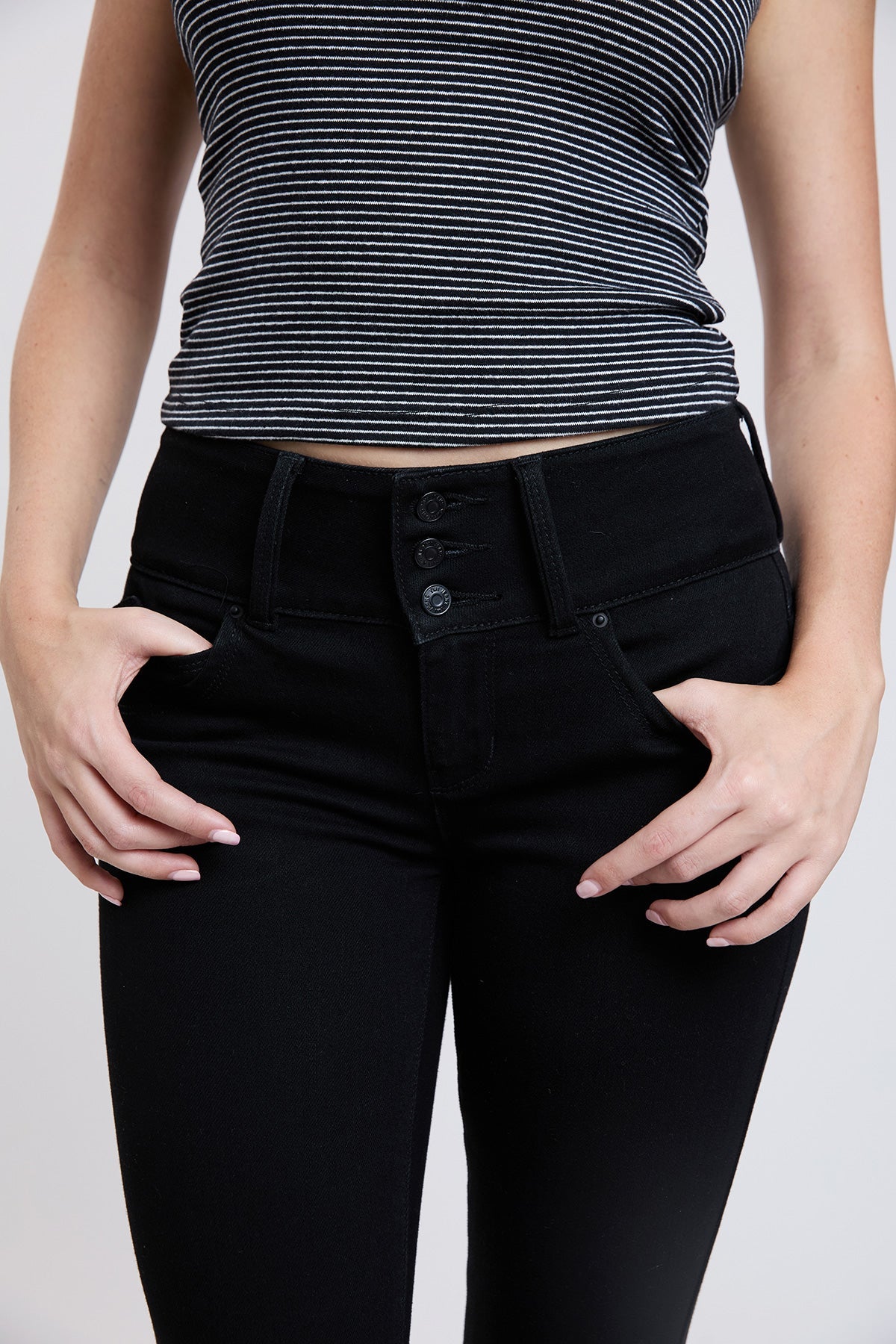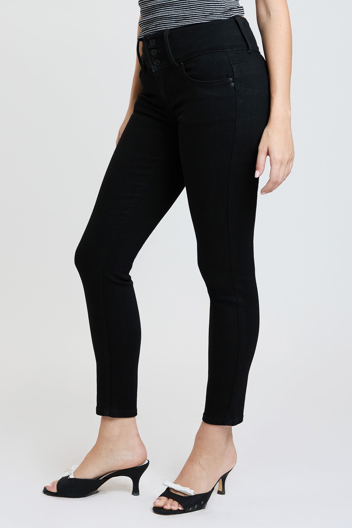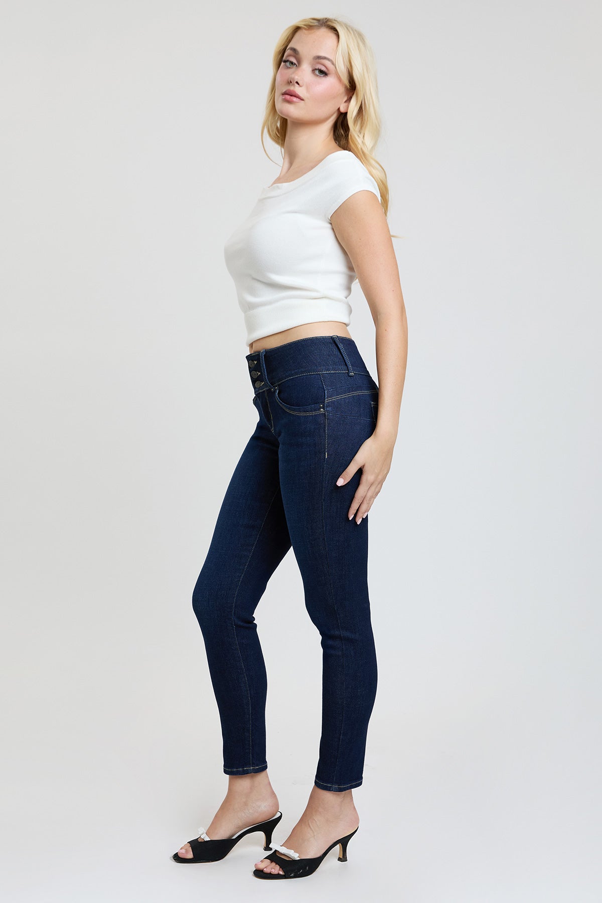 Women's Luxe Mid Rise 3-Button WannaBettaButt Skinny Jeans