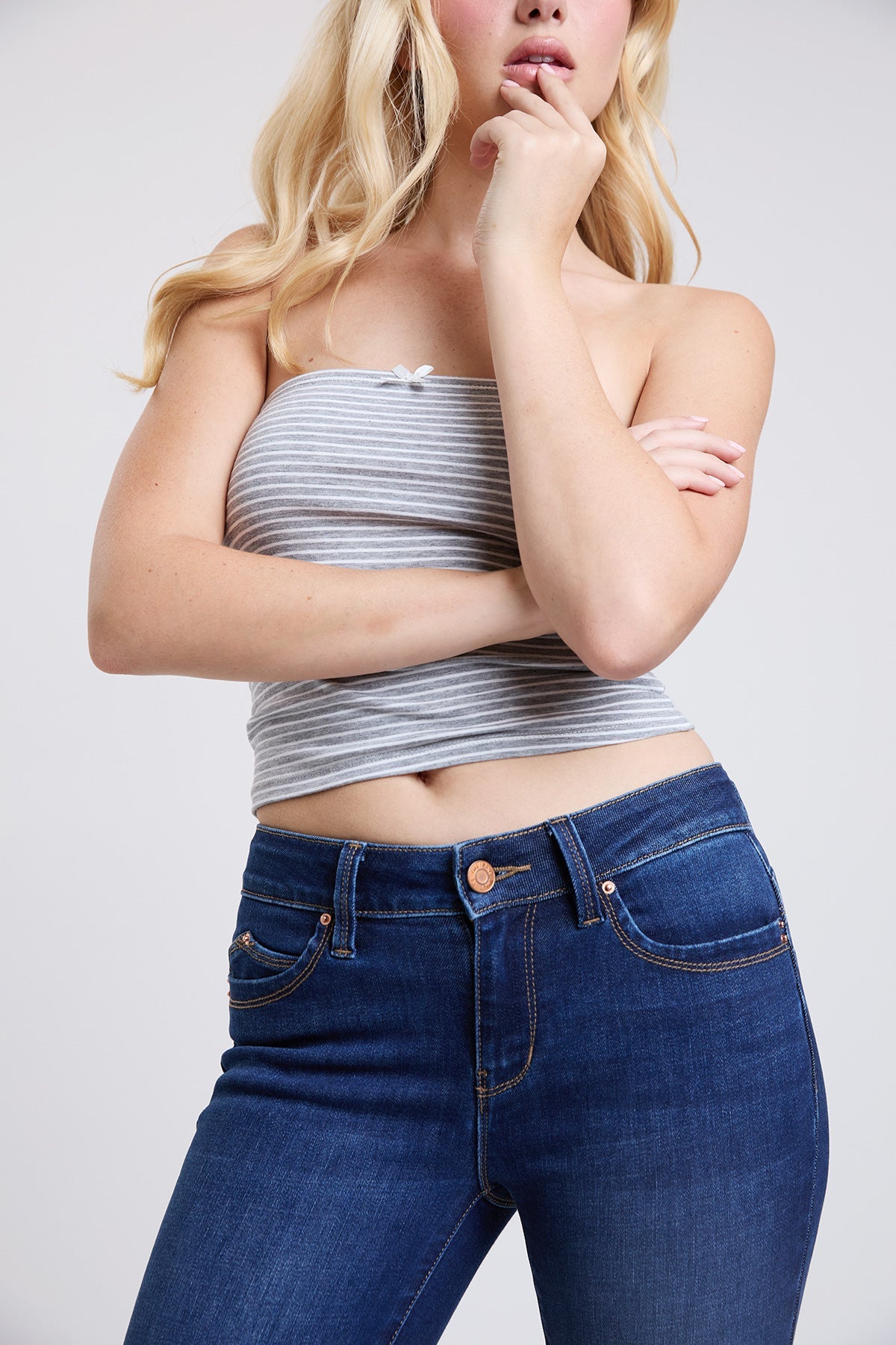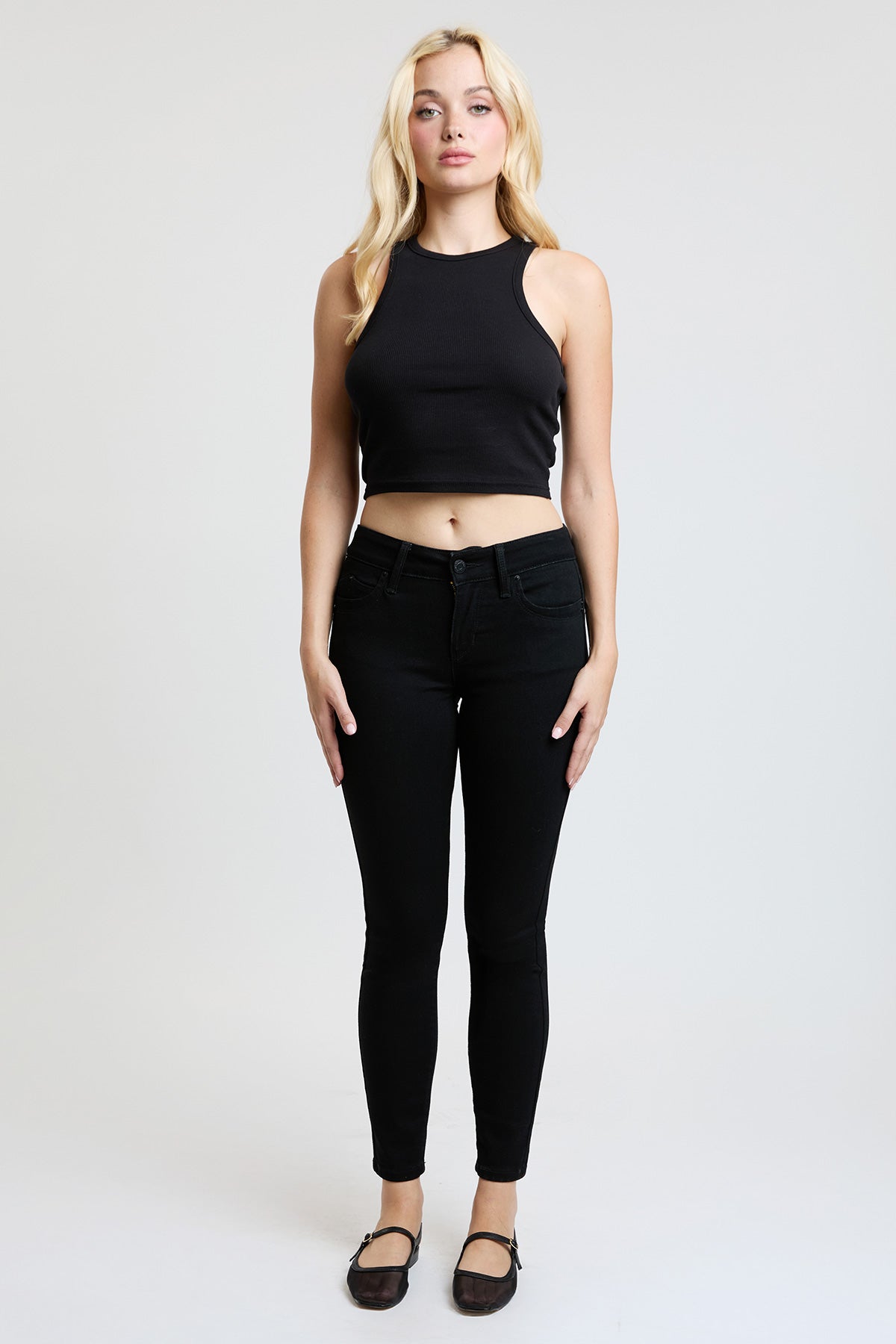 Made from premium stretch denim, they combine structure with flexibility, giving you a polished look and all-day comfort. Finished with a classic button-and-zipper fly, these skinnies are ready to pair with anything from casual tees to dressier tops.