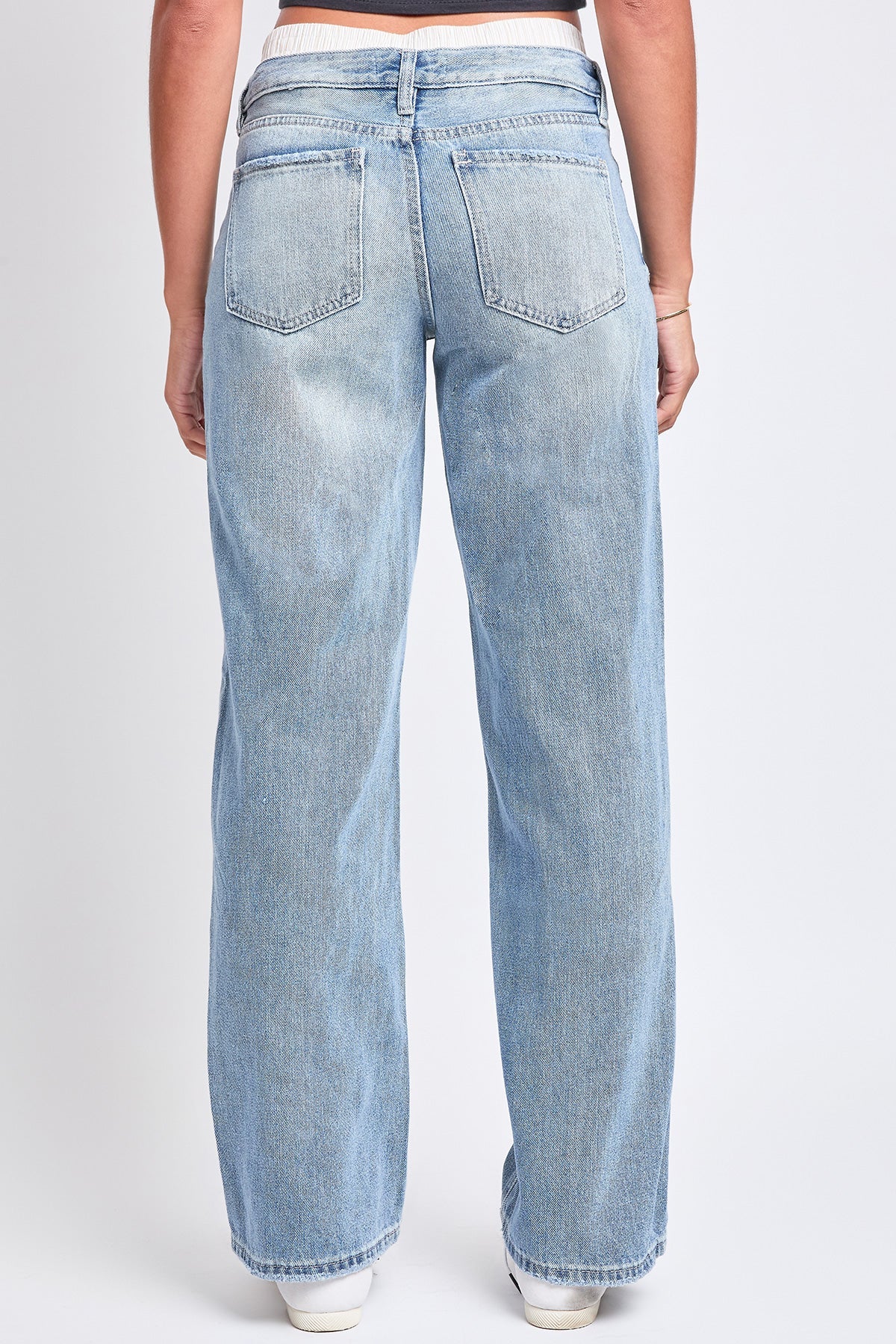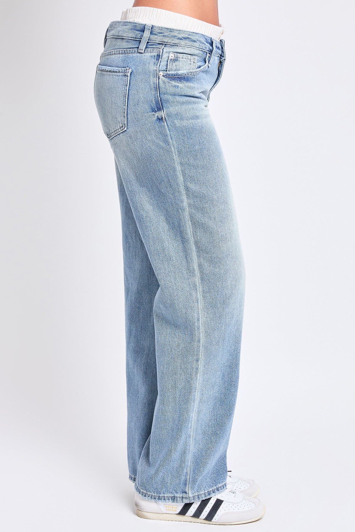 Women's Mid Rise Relax Fit Wide Leg Boxer Jeans by YMI Jeans, where laid-back comfort meets cutting-edge style for the modern woman. Crafted with meticulous attention to detail, these jeans offer a unique blend of relaxed design and versatile features.