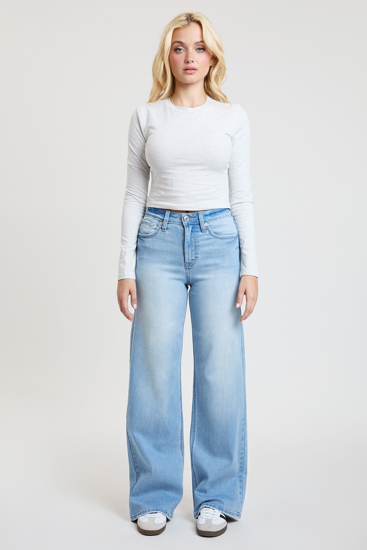 Experience elevated comfort with the Women’s Super Soft High Rise Wide Leg Jeans—designed with a luxurious fabric blend that feels incredibly soft against the skin while offering just the right amount of stretch.