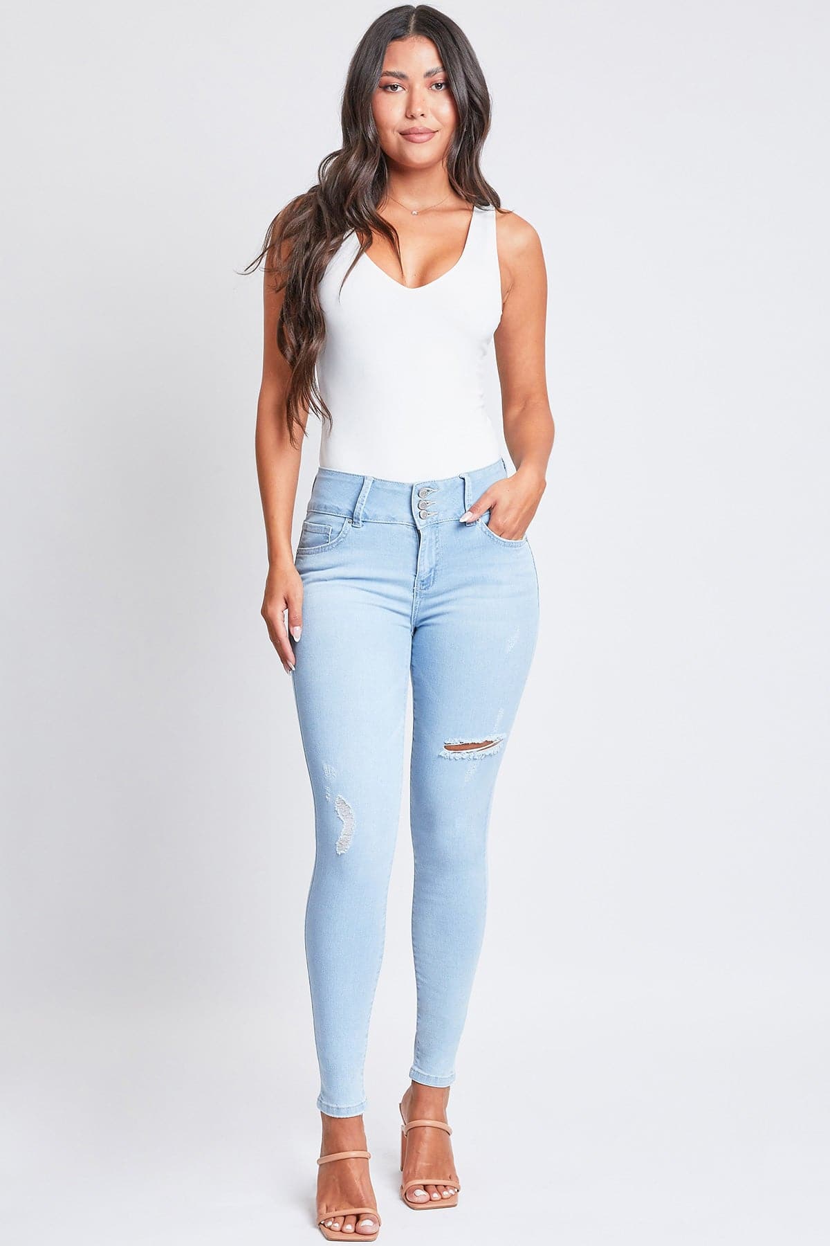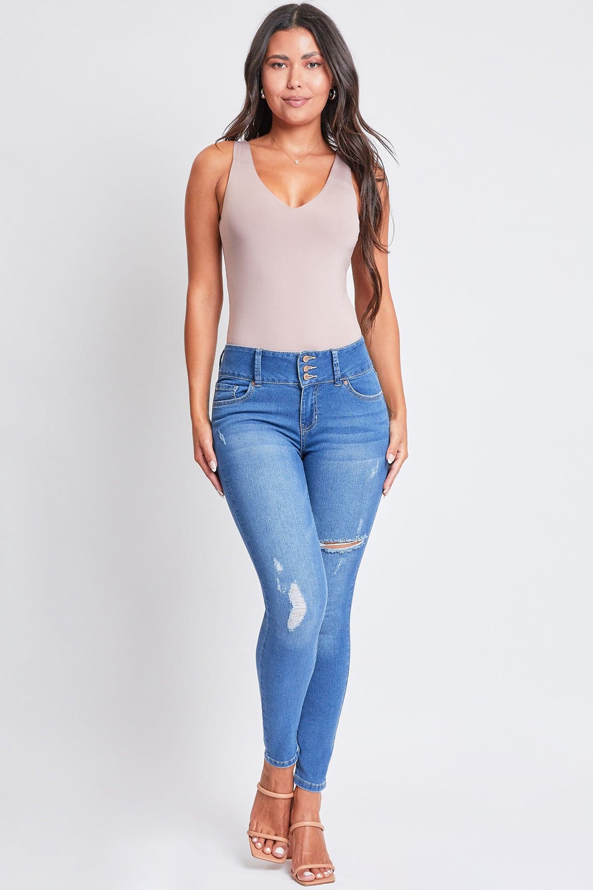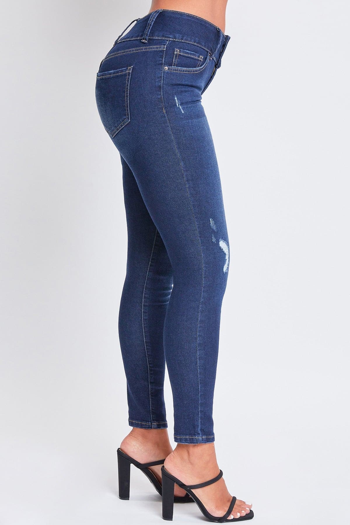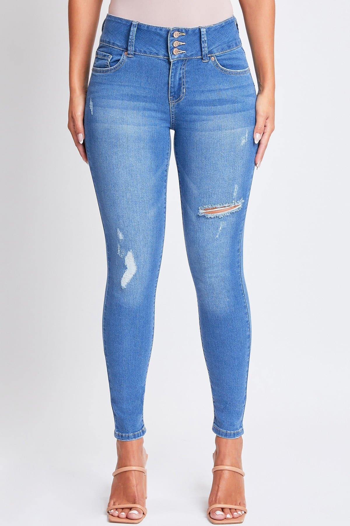 A classic skinny jean with a sustainable twist. Our Women’s Essential 3-Button High-Rise Skinny Jean Made With Recycled Fibers has trendy detailing, such as an exposed button fly, and is also eco-friendly! These high-waisted, slimming jeans have the same great fit and stretch that you love, now just sustainably made. There are so many ways to style these jeans- you can wear them with a form-fitting bodysuit and heels for an effortlessly sexy look, or you can wear them more casually with a graphic tee and sneakers!