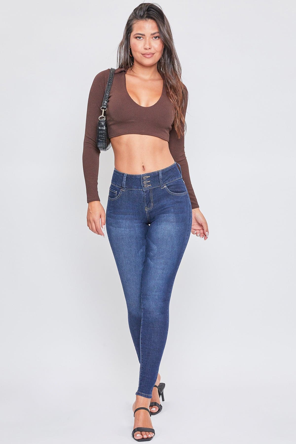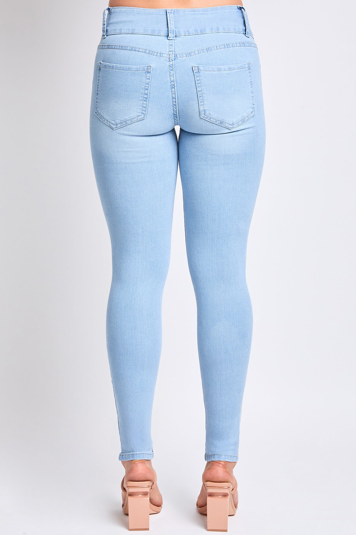 A classic skinny jean with a sustainable twist. Our Women’s Essential 3-Button High-Rise Skinny Jean Made With Recycled Fibers has trendy detailing, such as an exposed button fly, and is also eco-friendly! These high-waisted, slimming jeans have the same great fit and stretch that you love, now just sustainably made. There are so many ways to style these jeans- you can wear them with a form-fitting bodysuit and heels for an effortlessly sexy look, or you can wear them more casually with a graphic tee and sneakers!