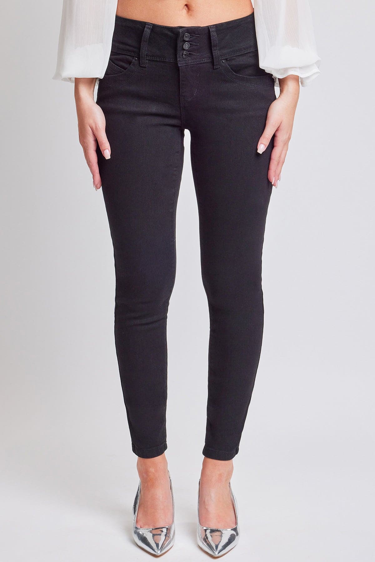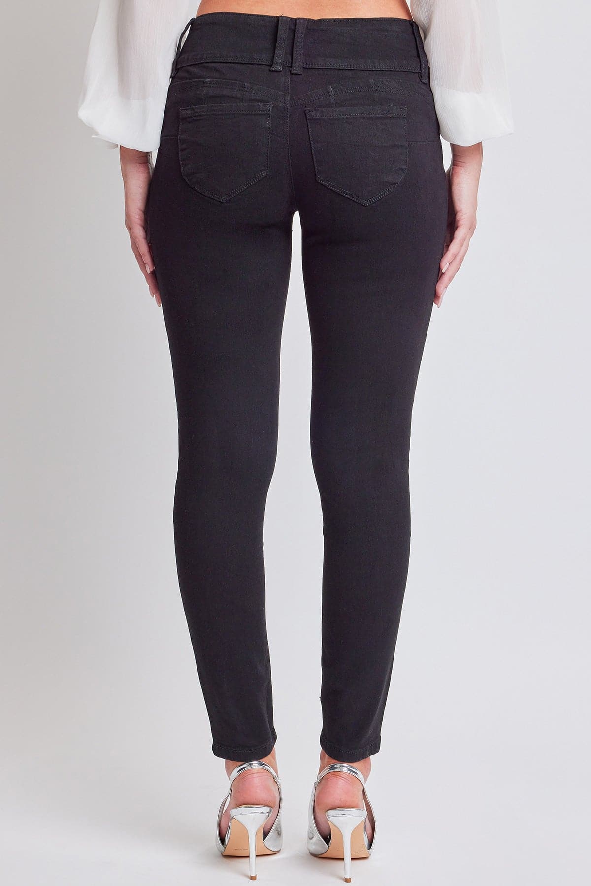 Your favorite skinnies just got trendier! Our Women's WannaBettaButt 3-Button Mid-Rise Skinny Jean Made with Recycled Fibers are vintage-inspired with an exposed button fly and light distressing for a worn-in look. Made with lightweight and stretchy, yet durable recycled micro fibers, our WannaBettaButt collection provides you with the right amount of comfort and stretch. These mid-rise skinnies sit perfectly at the hip and feature our signature heart shape butt stitching that highlights your natural curves. Front tuck your favorite tee or pair with a bodysuit to show off the retro vibe of these jeans!