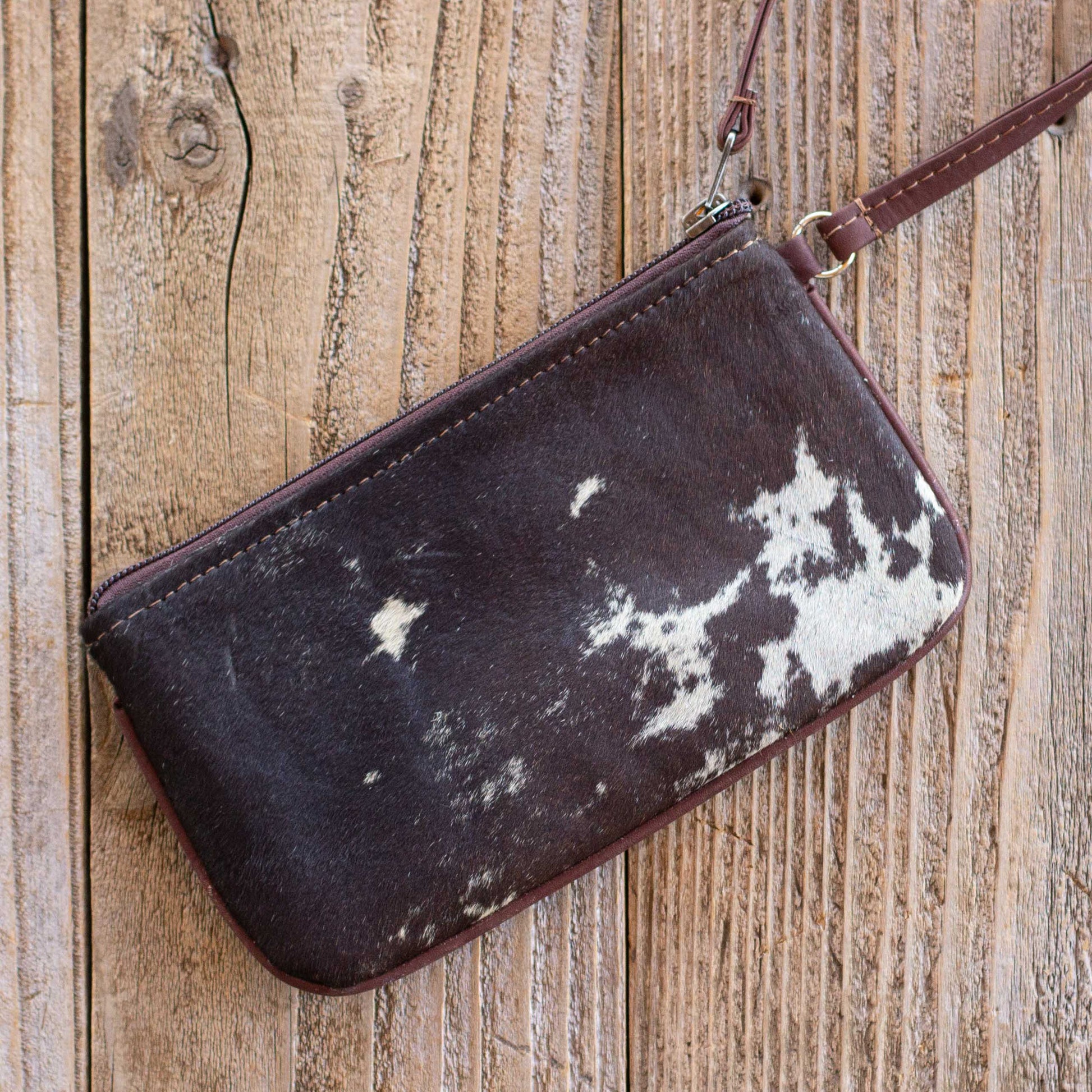 🤠 Stadium-approved Wristlet design with one of a kind cowhide character.