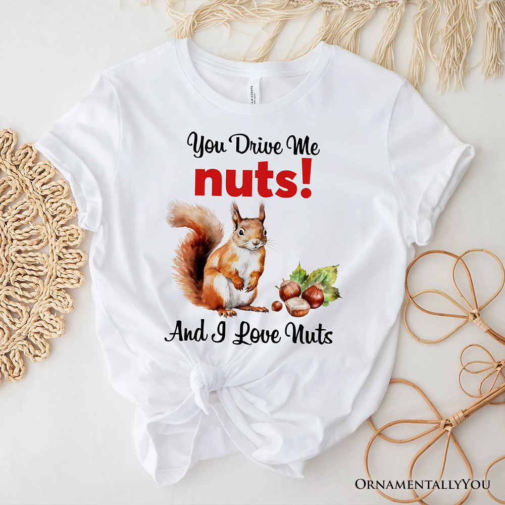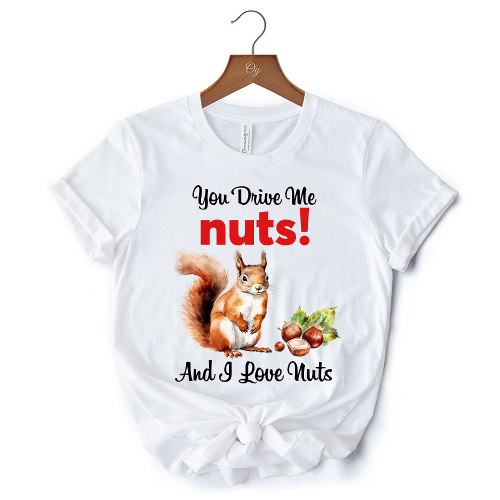 You Drive Me Nuts T-Shirt, Cute Watercolor Squirrel White Tee for Nuts Lovers
